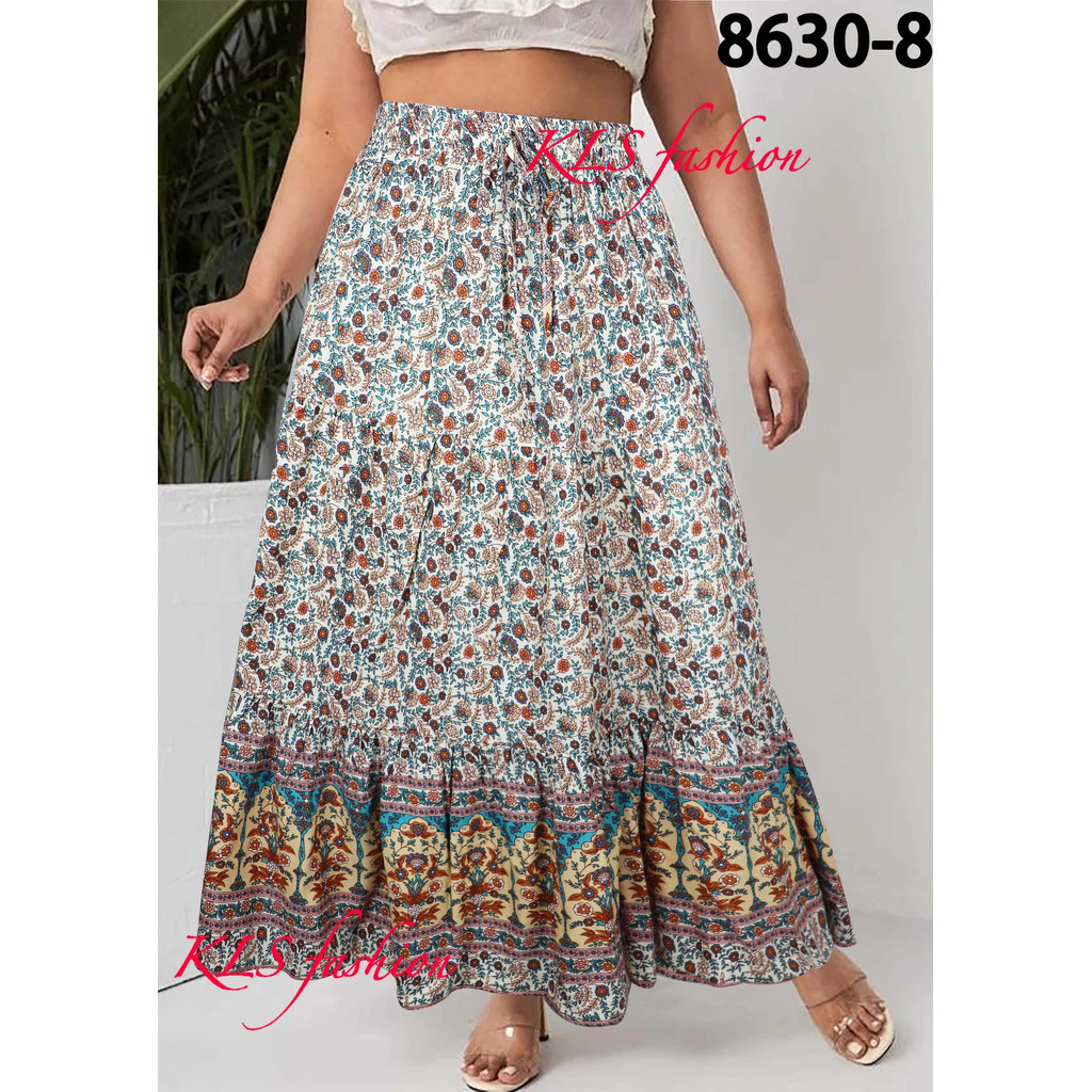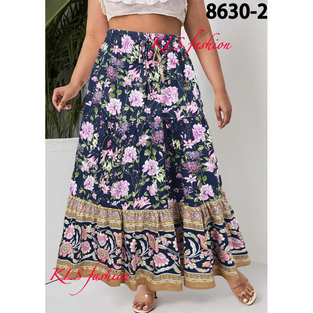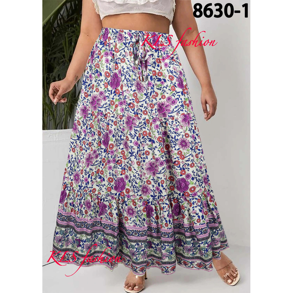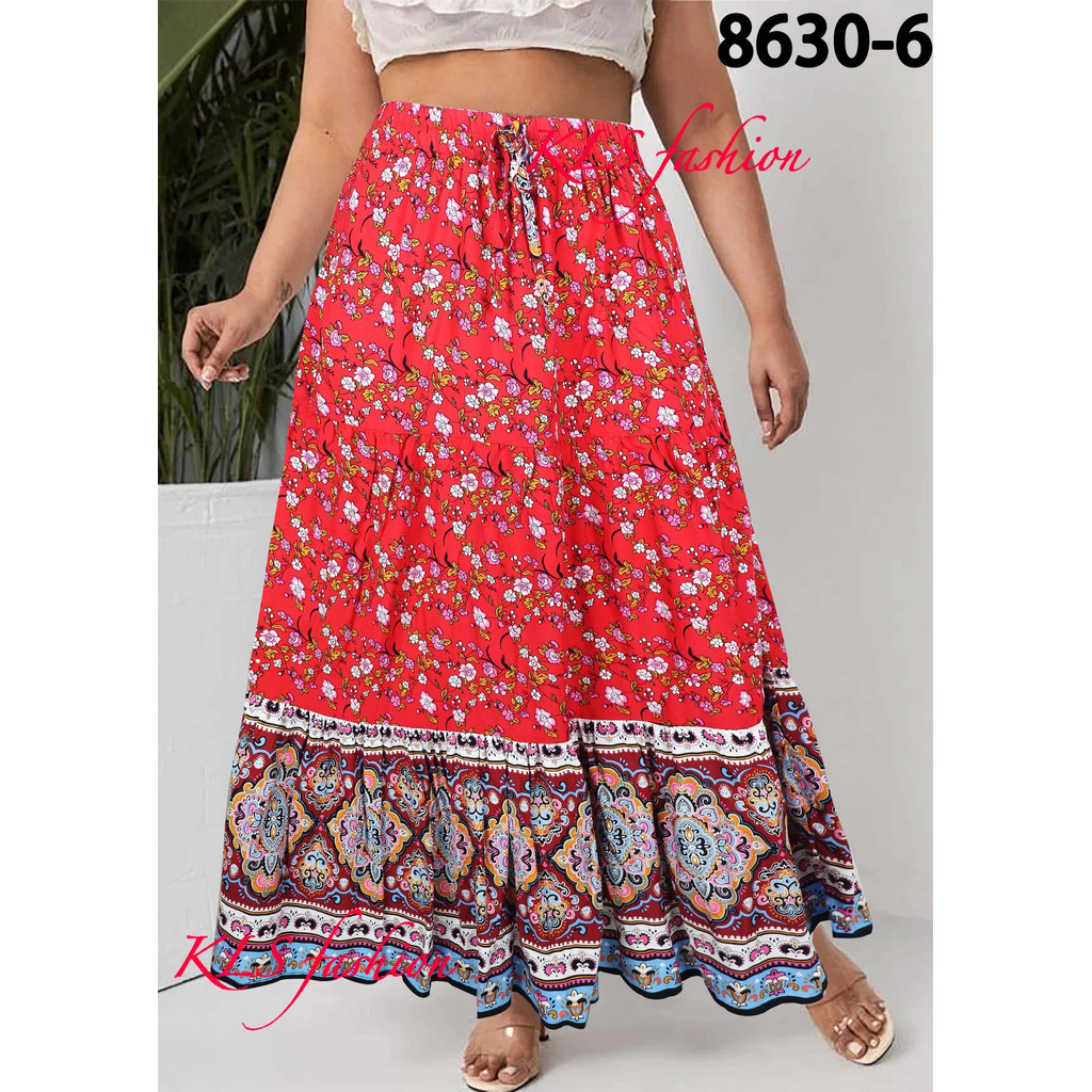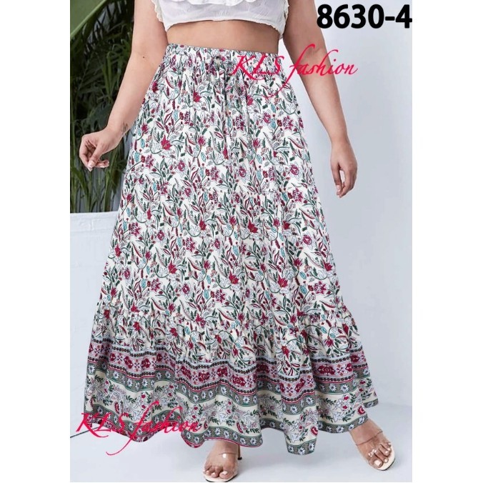 L-XXL Women's Plussize High Waist Casual Relaxed Brethable Floral Skirt 8630