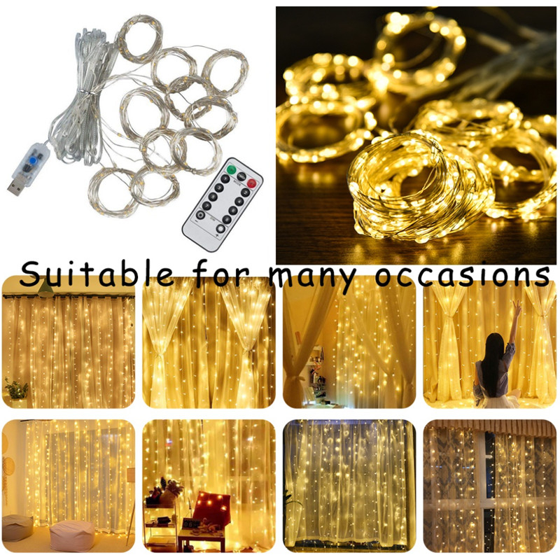 Remote control curtain USB string lights 300 LED lights fairy lights decor Home Garden Party Wedding