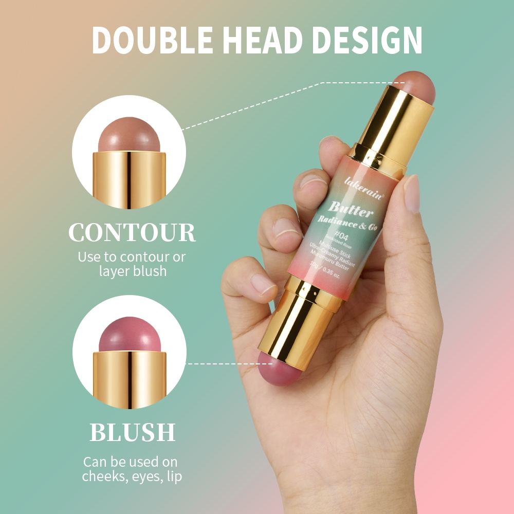 Lakerain Dual-Ended Blush And Bronzer Stick,Ultra-Creamy Radiant Finish Formula With Butter Vegan & Cruelty-Free
