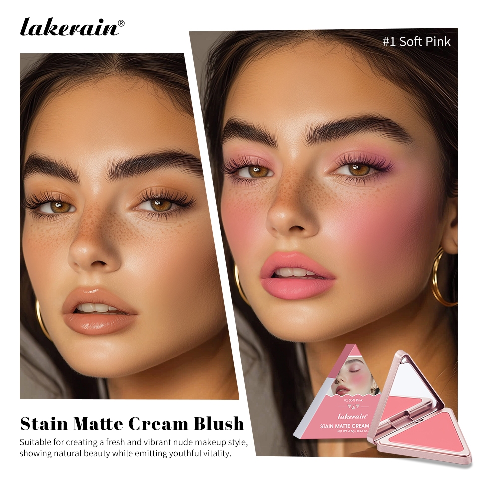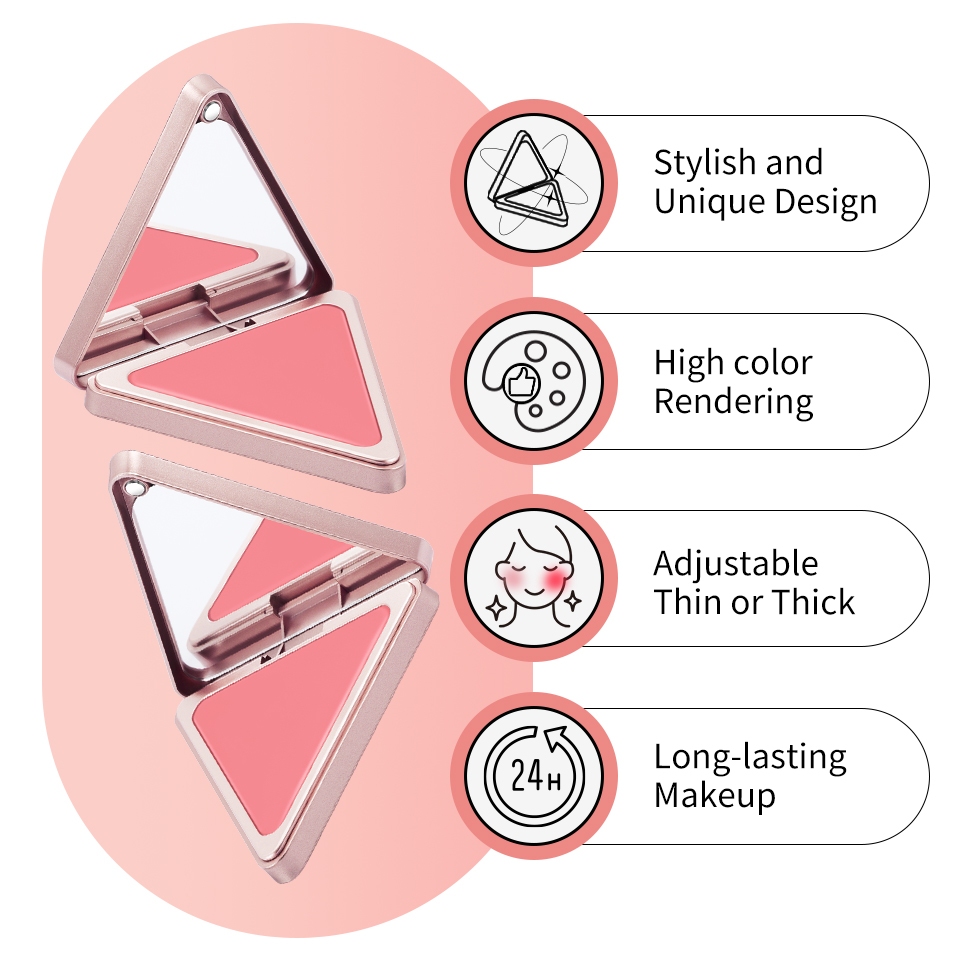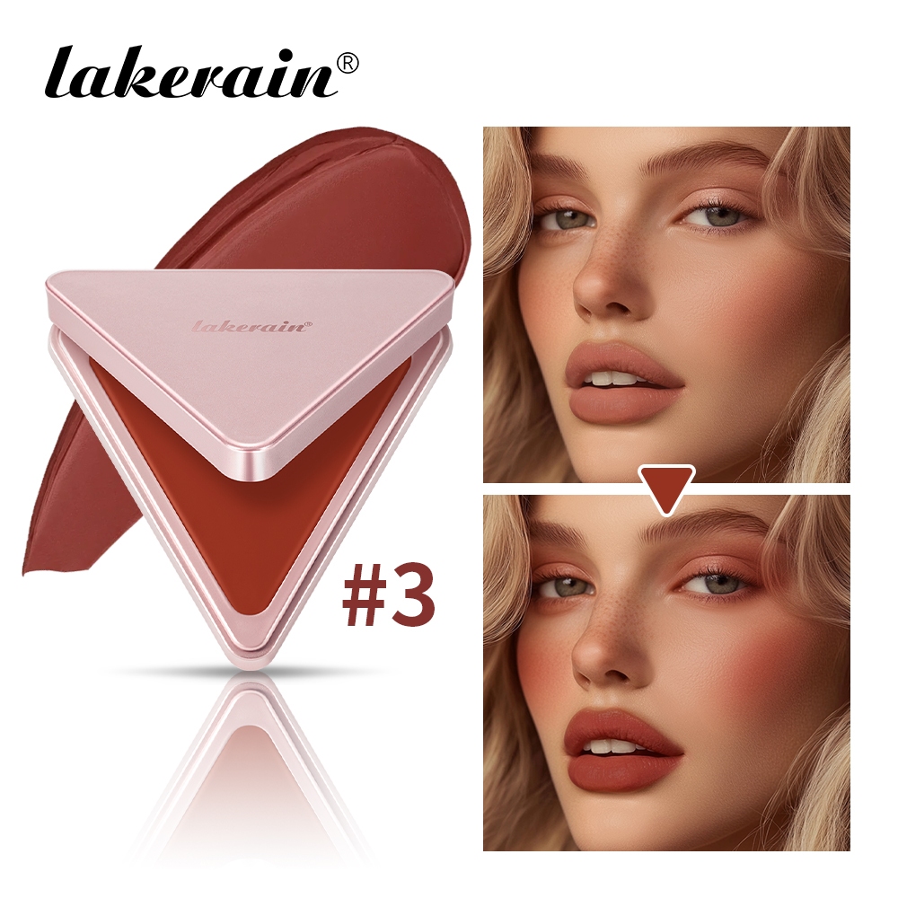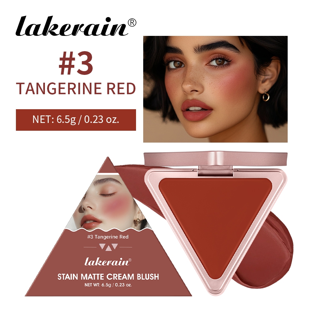 Lakerian Triangle Matte Cream Blush,Higher Standard Satin Single Blush Long Lasting Waterproof Natural Blusher Silky Cheek Face Makeup