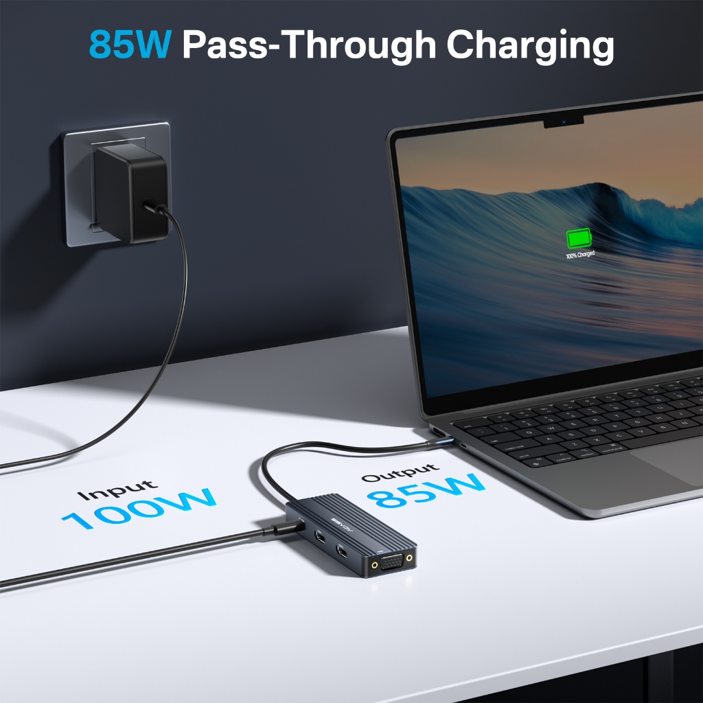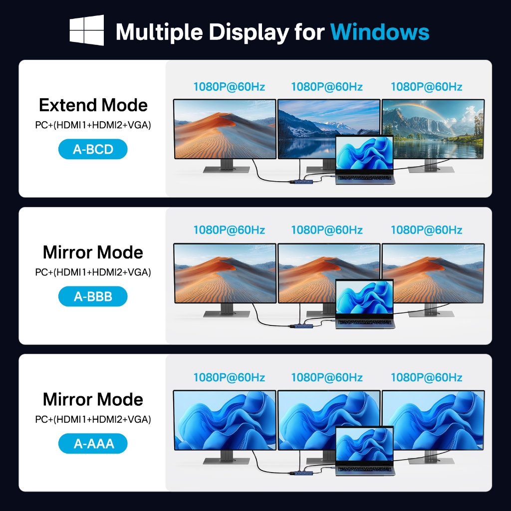 ACASIS USB C 8-in-1 Docking Station 3Monitors,Laptop Docking Station with Dual HDMI 4K@60HZ,1*VGA 1080P@60HZ,2 * 5G USB A,1 * 5G USB C,3.5MM Audio,PD100W;Dock for MacBook/Windows