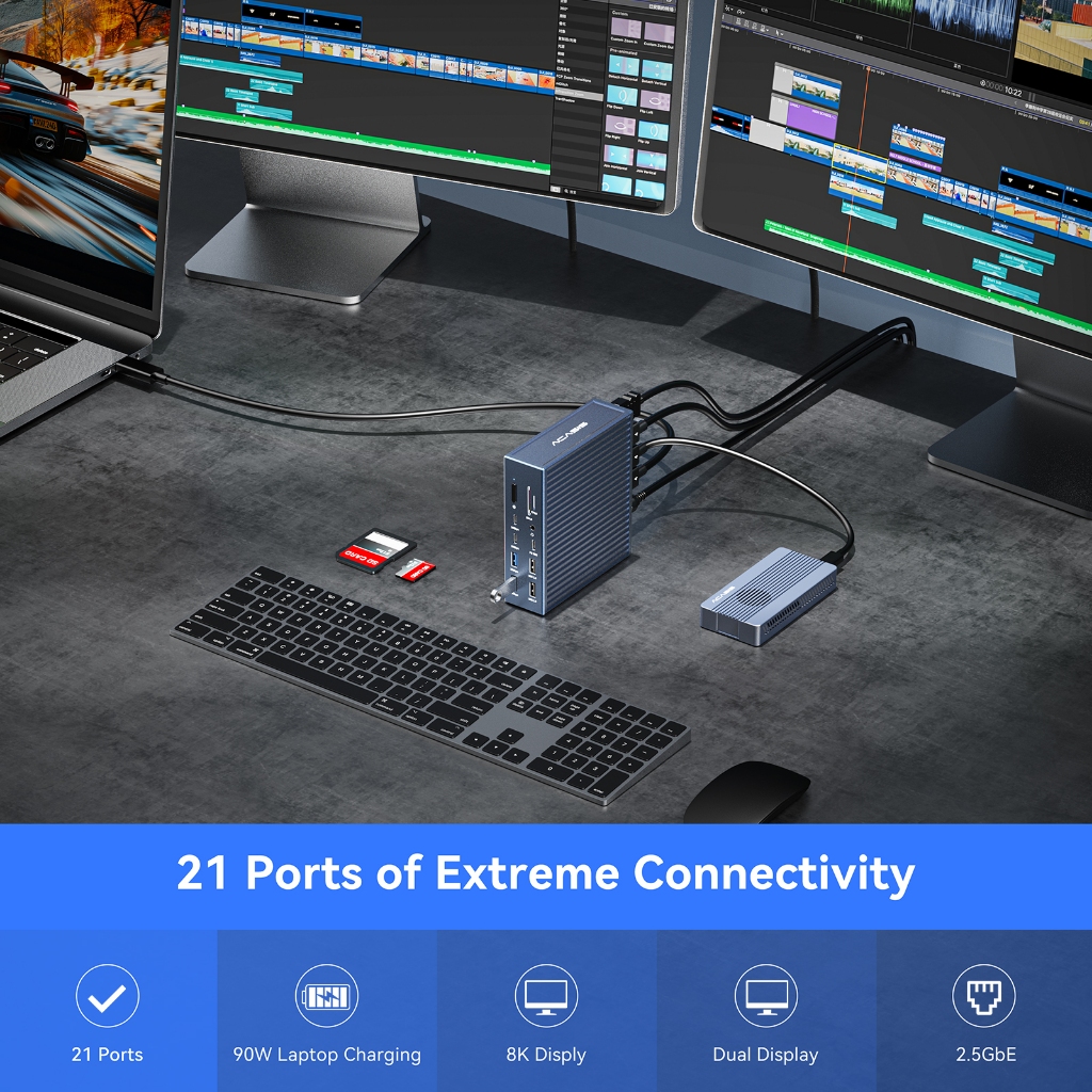 ACASIS 21-In-1 Compatible with Thunderbolt4/3 Hub Docking Station, Max90W Charging For Laptop, Single 8K60Hz Or Dual 4K60Hz Display, USB-C 3.1 2 Port, for MacBook Pro / Air