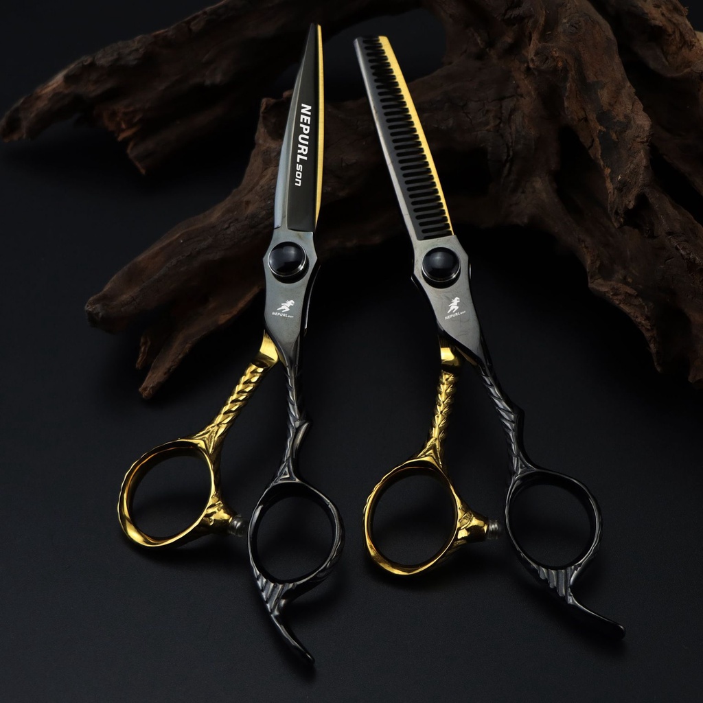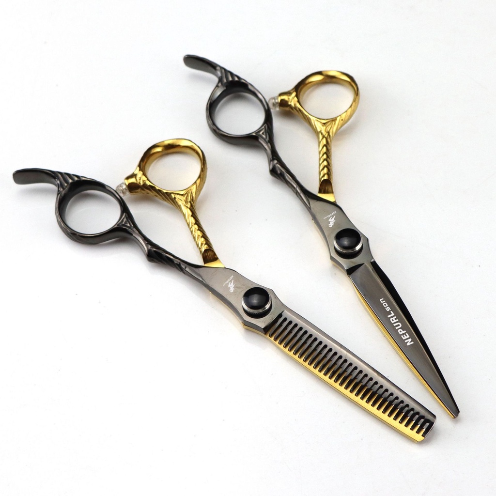 Black Gold Dimash Handle 6.0 Inch Barber Scissor Flat Scissor Bangs Scissor Teeth Scissor Thin Scissor