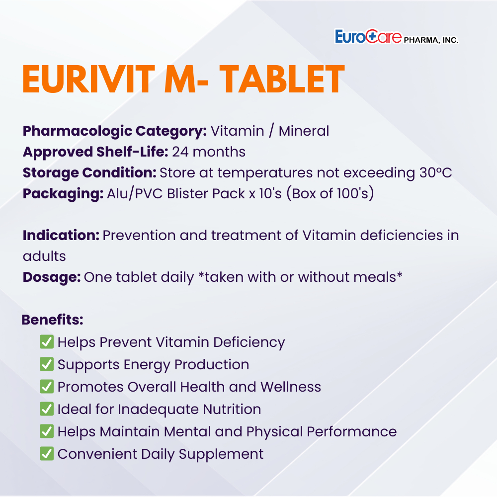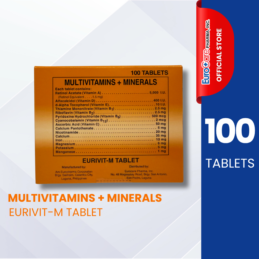 Eurivit Multivitamins Plus Minerals Sugar Coated Tablet Box of 100's