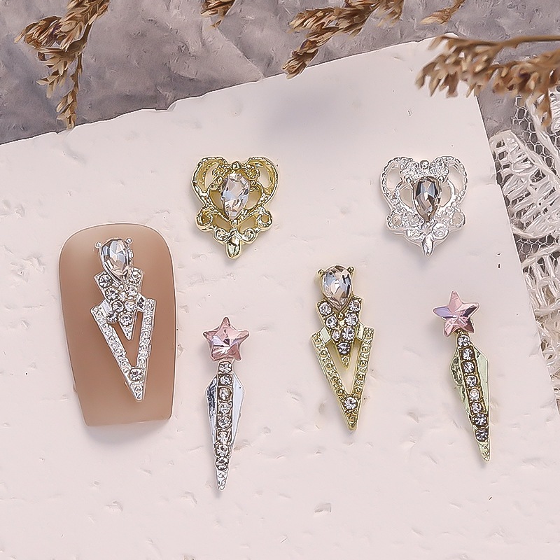 Manicure Accessories Influencer High-End Super Flashing Water Drop Hollow Heart Scepter Nail Decoration