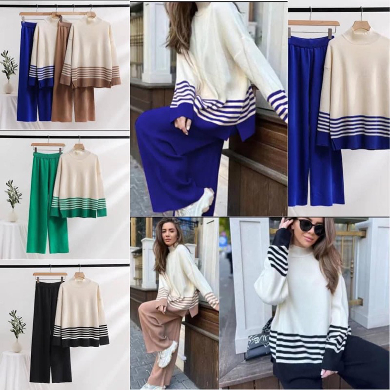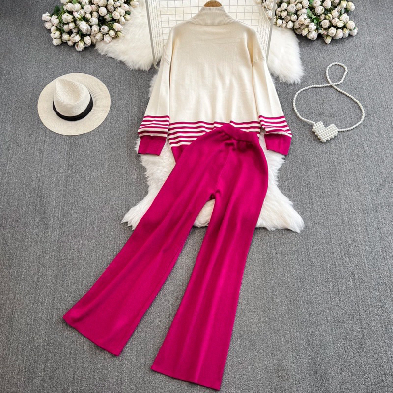 Premium 2 Piece Outfit Knitted Long Sleeves and Garterize Pants Terno