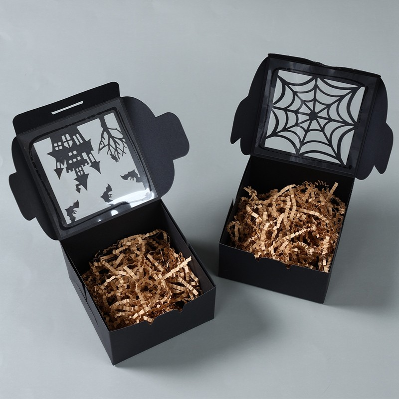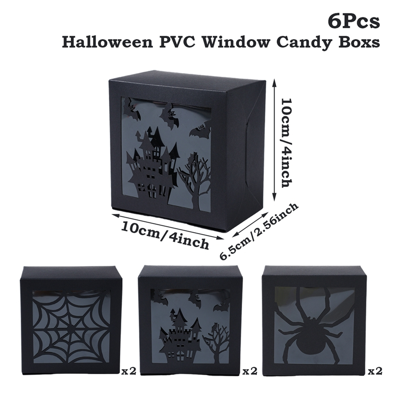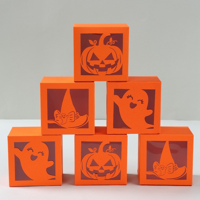 6pcs Halloween Orange Black Treat Boxes PVC Window Box Printed Pumpkin Ghost Witch Hat Happy Halloween Party Favors Halloween Decor