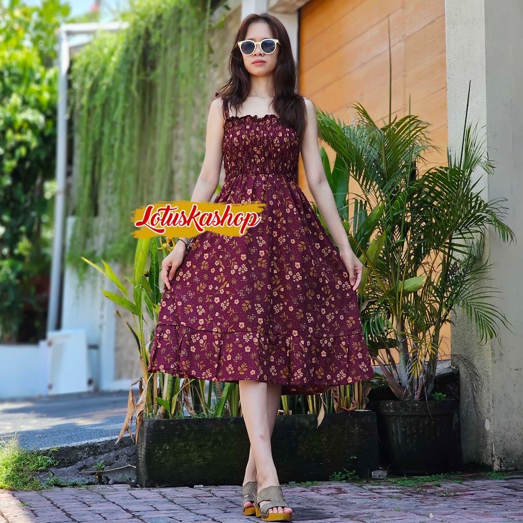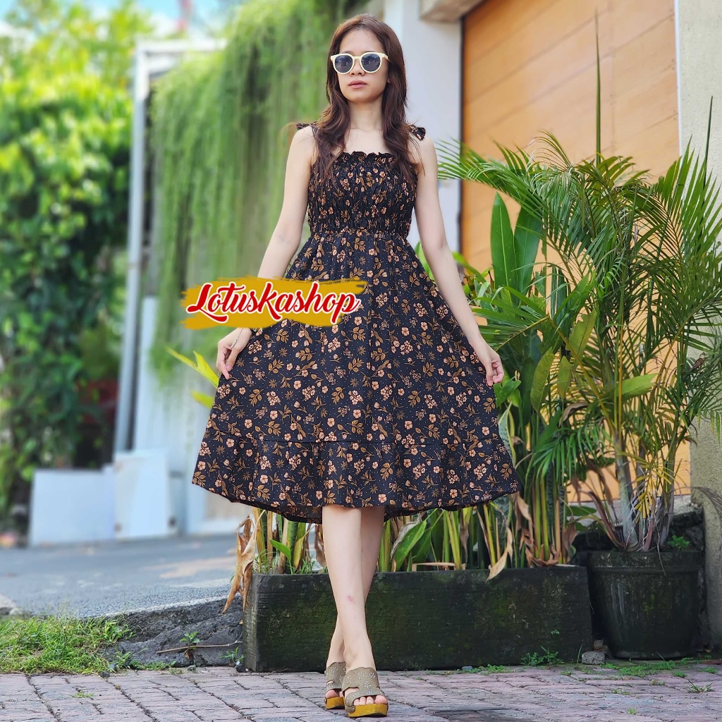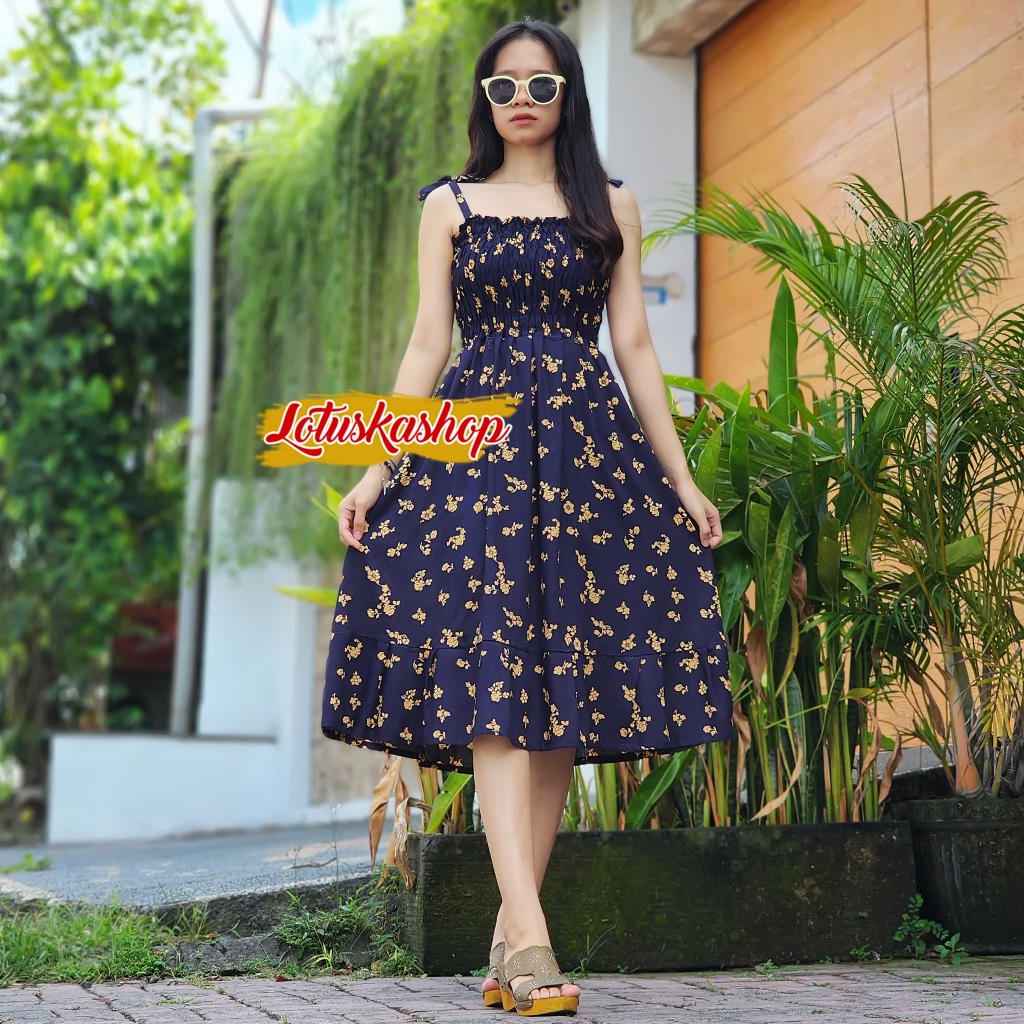 Ayuna Midi Dress with Rayon Shoulder Straps Dress for Woman Casual Dress for Women Casual Elegant