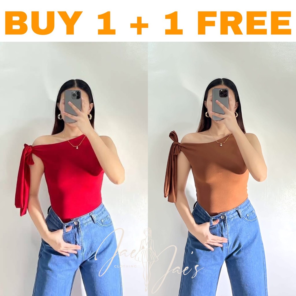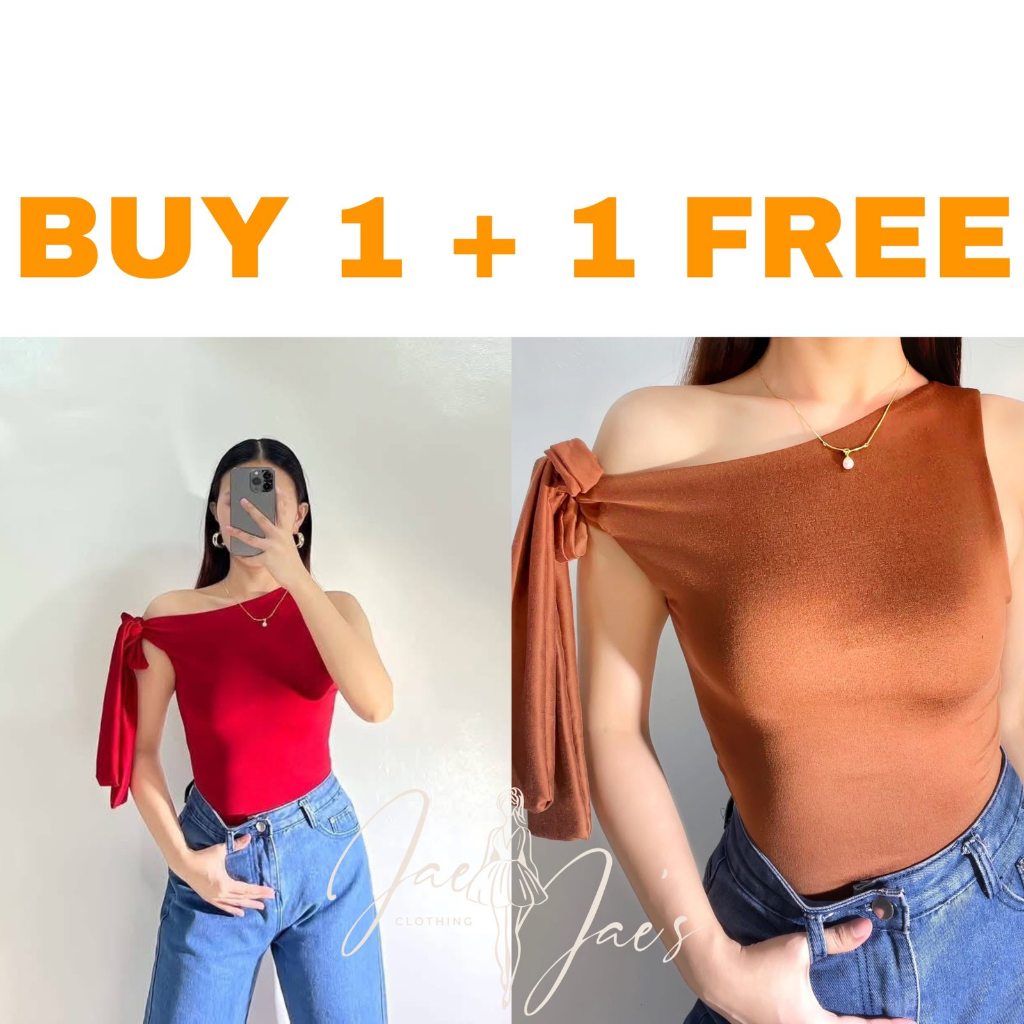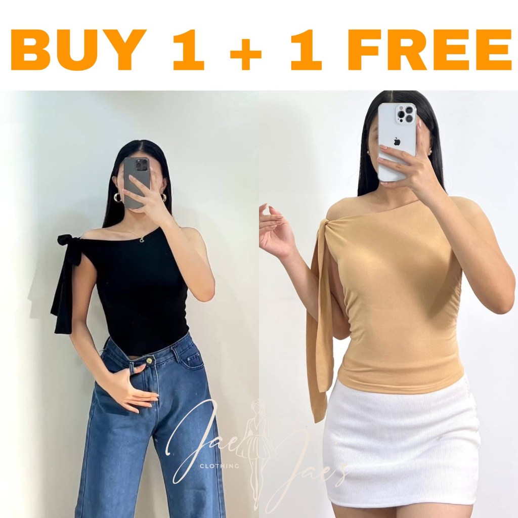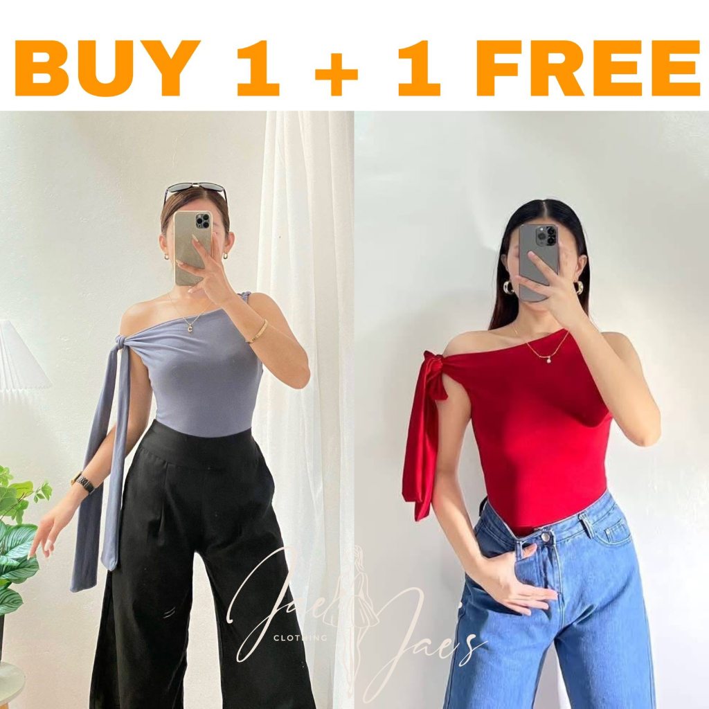 Claudine Buy 1 + 1 Free (2PCS) One Side Tie Asymmetrical Basic Cotton Double Lining Stretchable Top