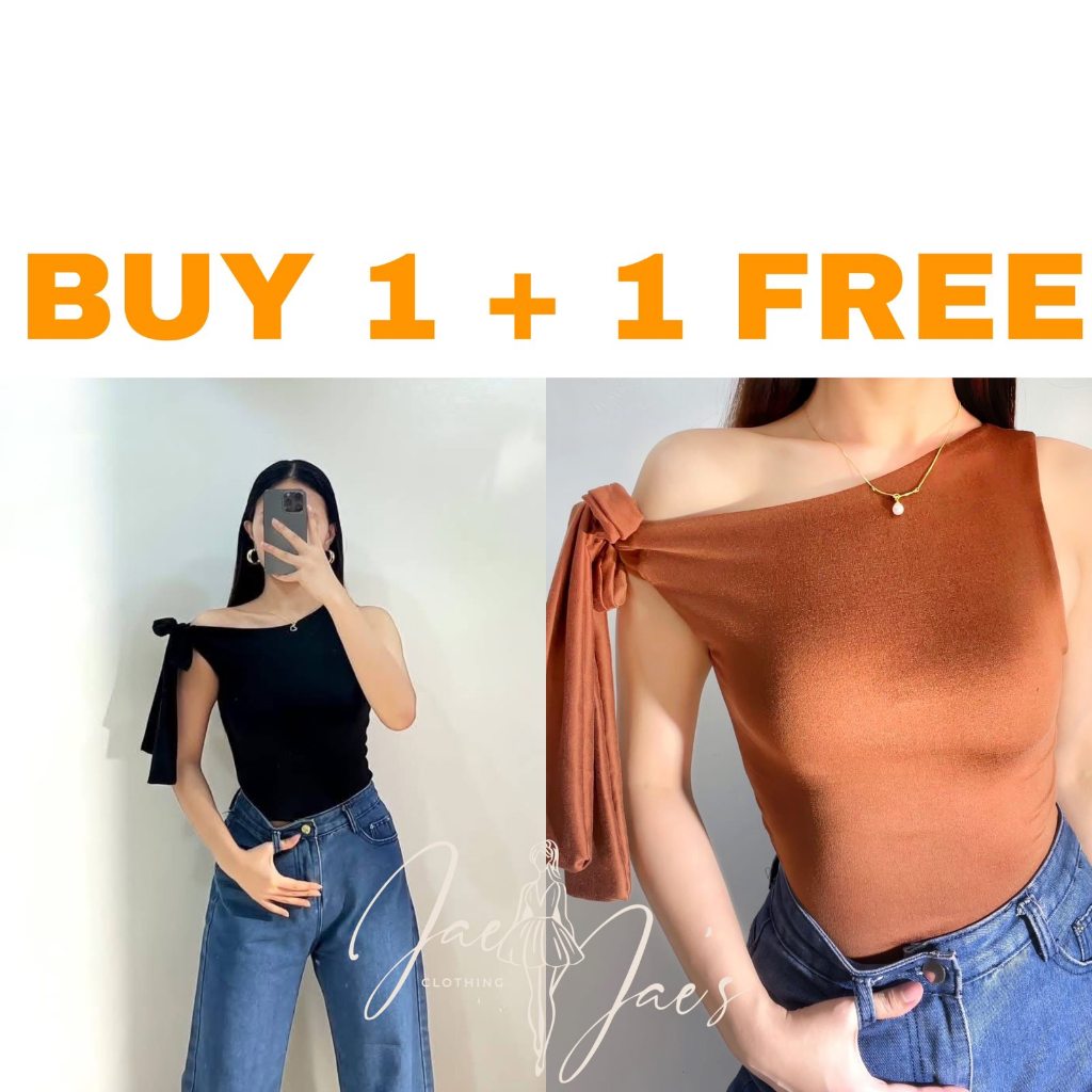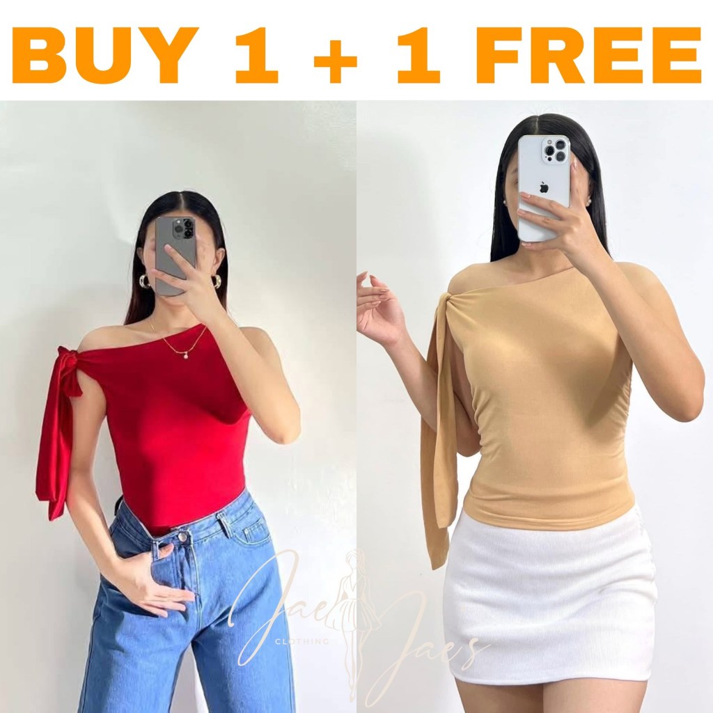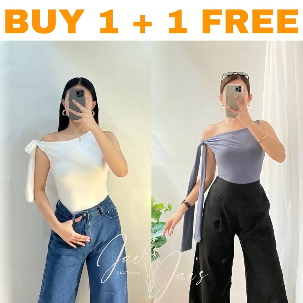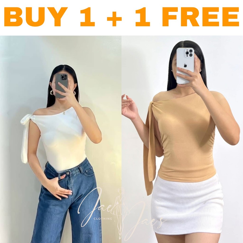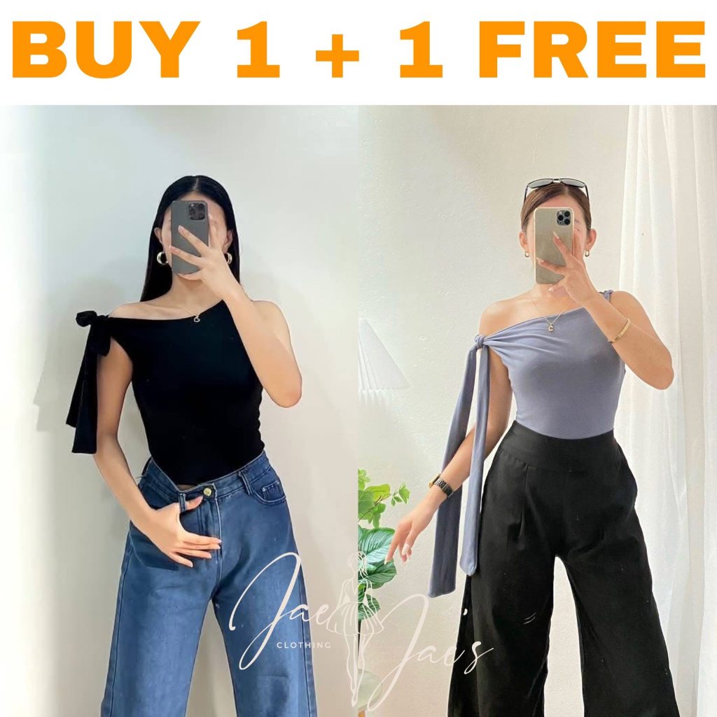 Claudine Buy 1 + 1 Free (2PCS) One Side Tie Asymmetrical Basic Cotton Double Lining Stretchable Top