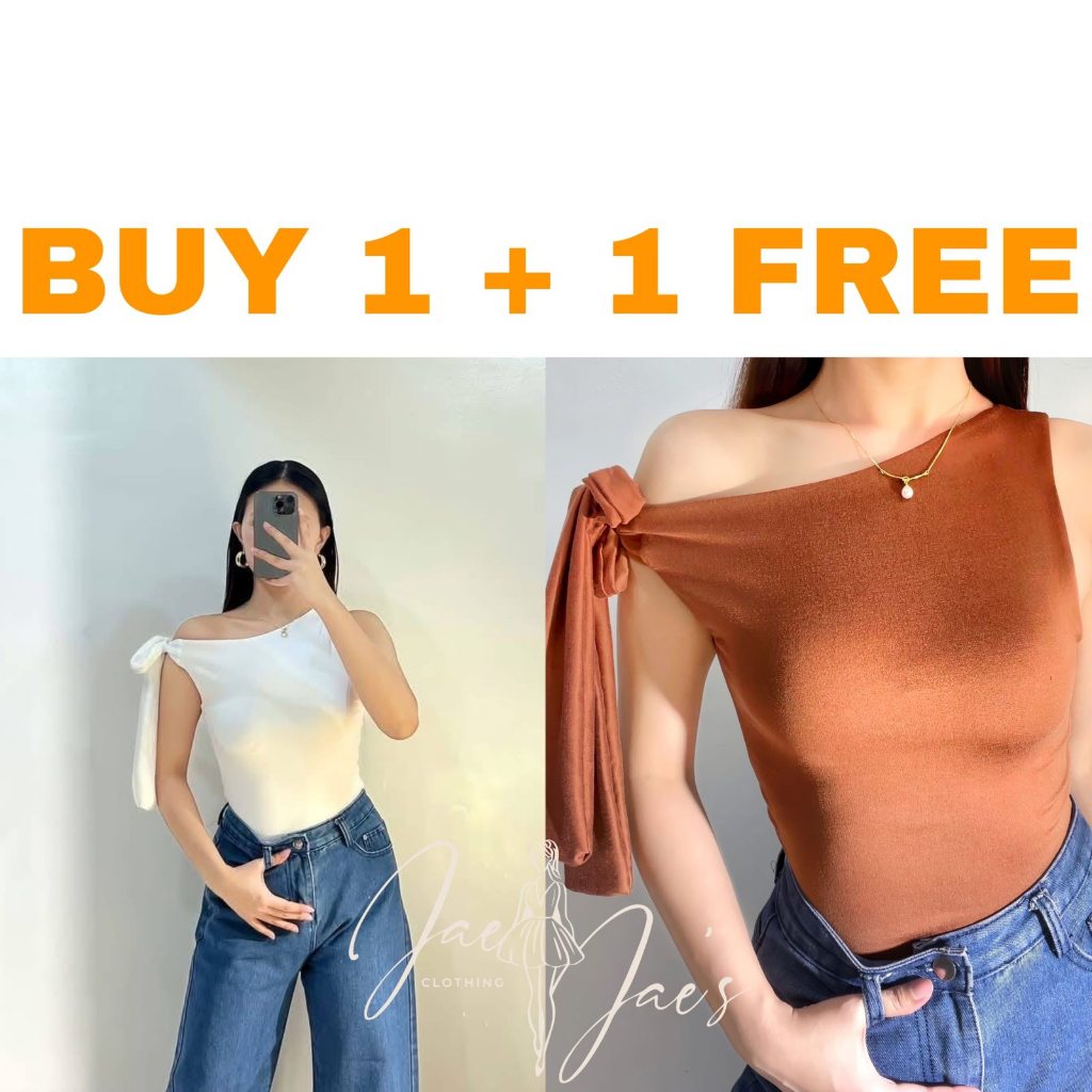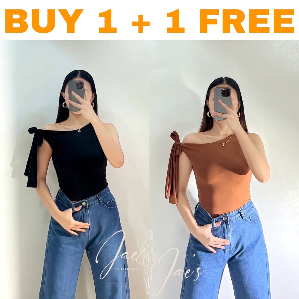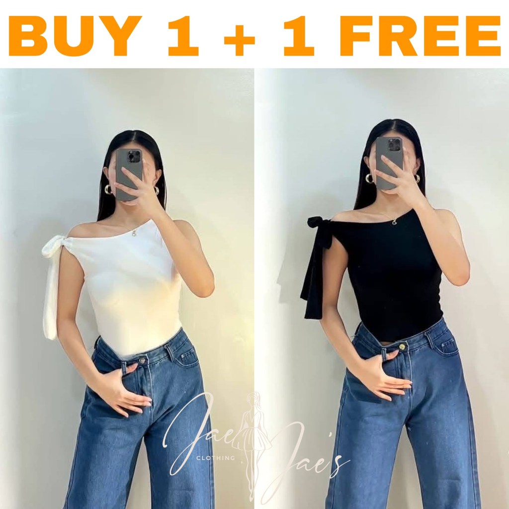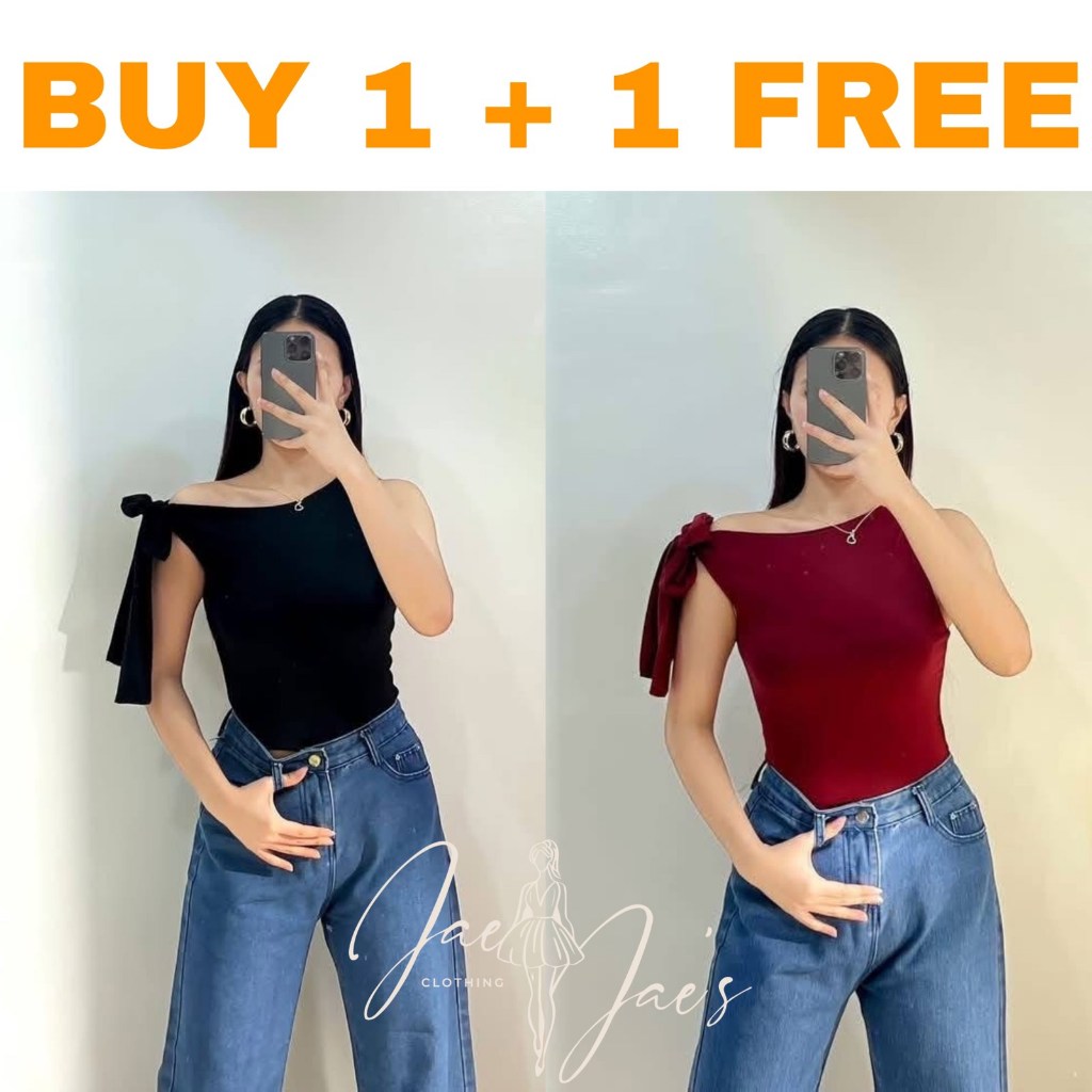 Claudine Buy 1 + 1 Free (2PCS) One Side Tie Asymmetrical Basic Cotton Double Lining Stretchable Top
