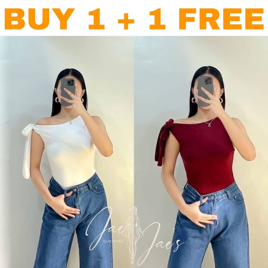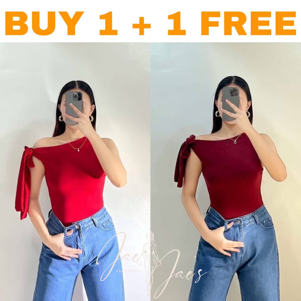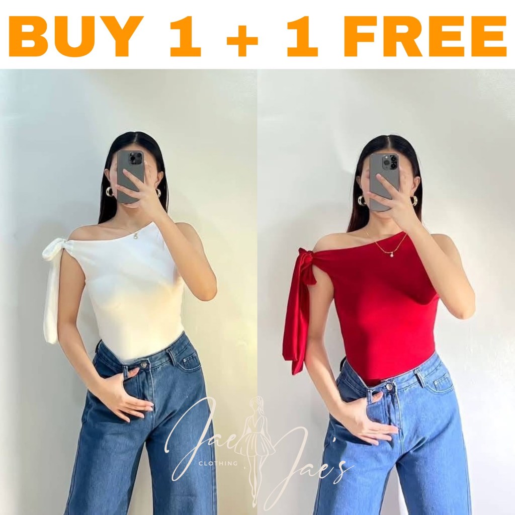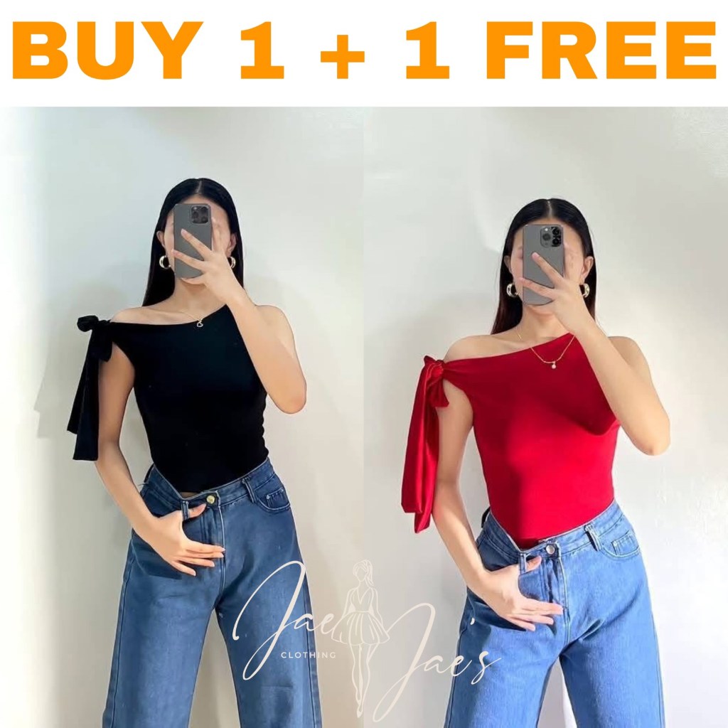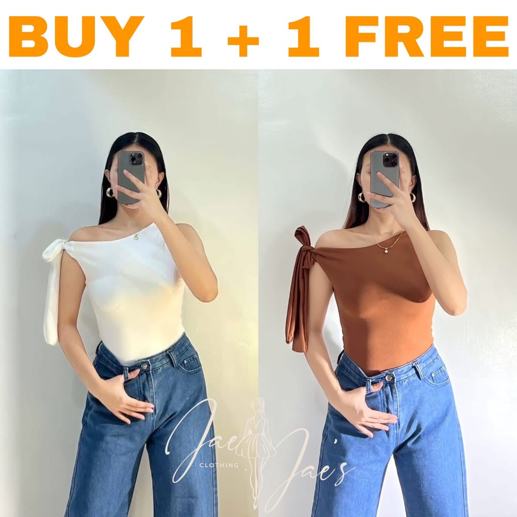 Claudine Buy 1 + 1 Free (2PCS) One Side Tie Asymmetrical Basic Cotton Double Lining Stretchable Top