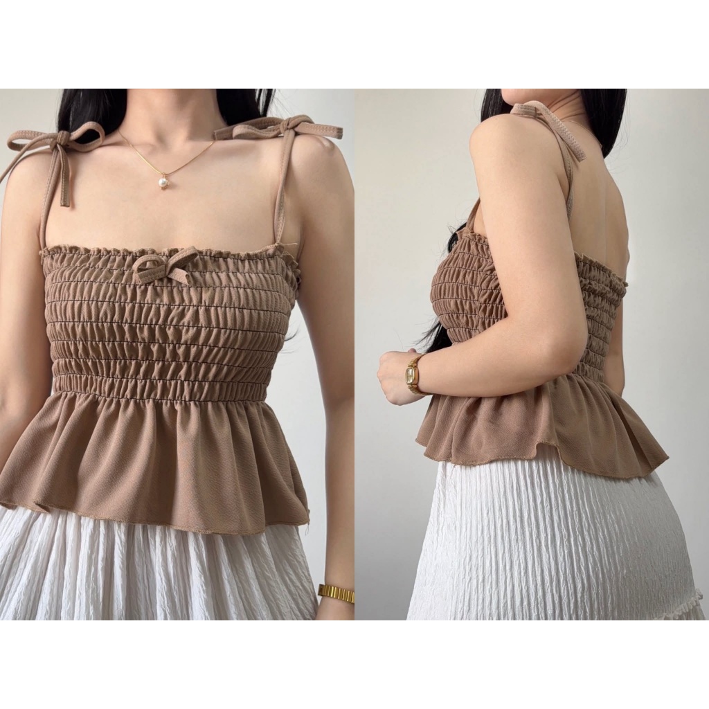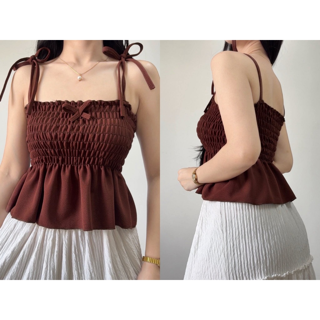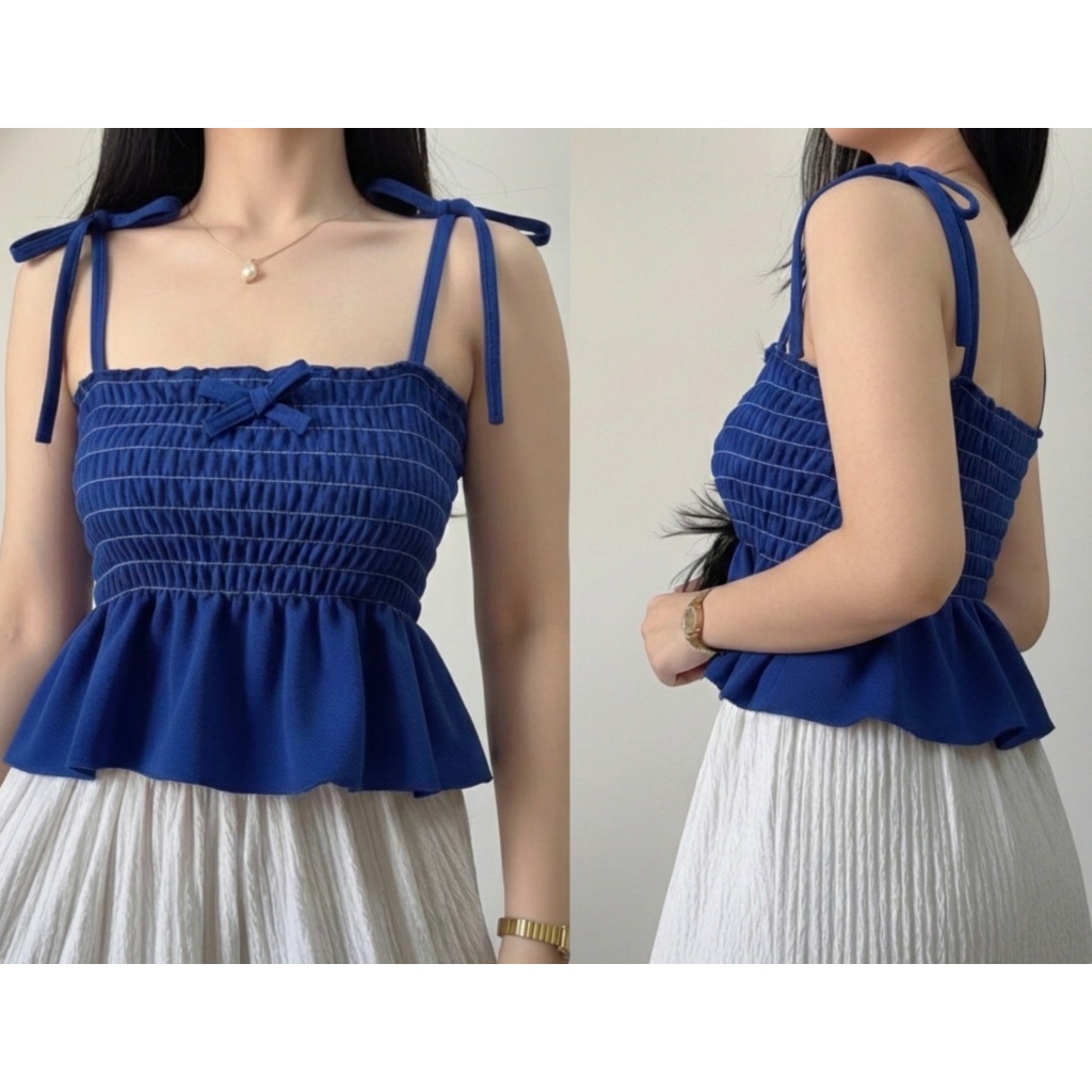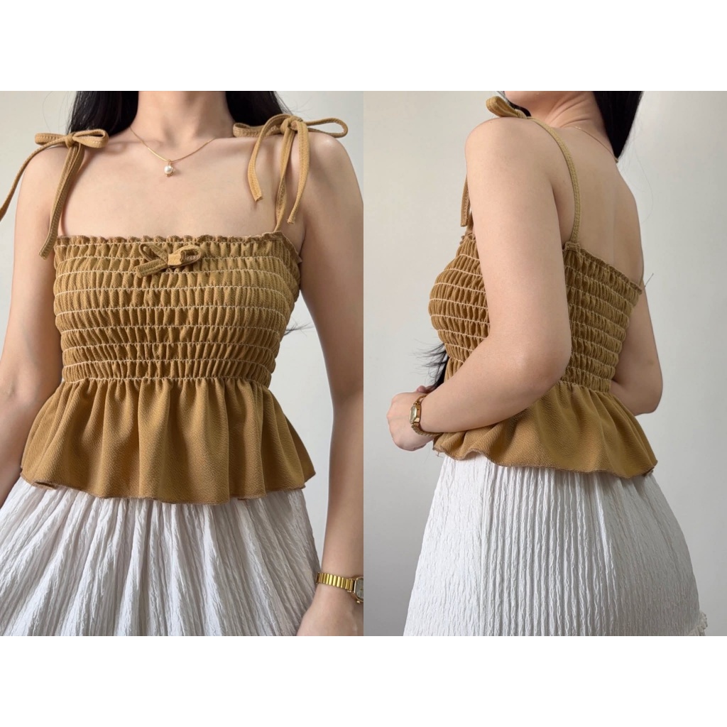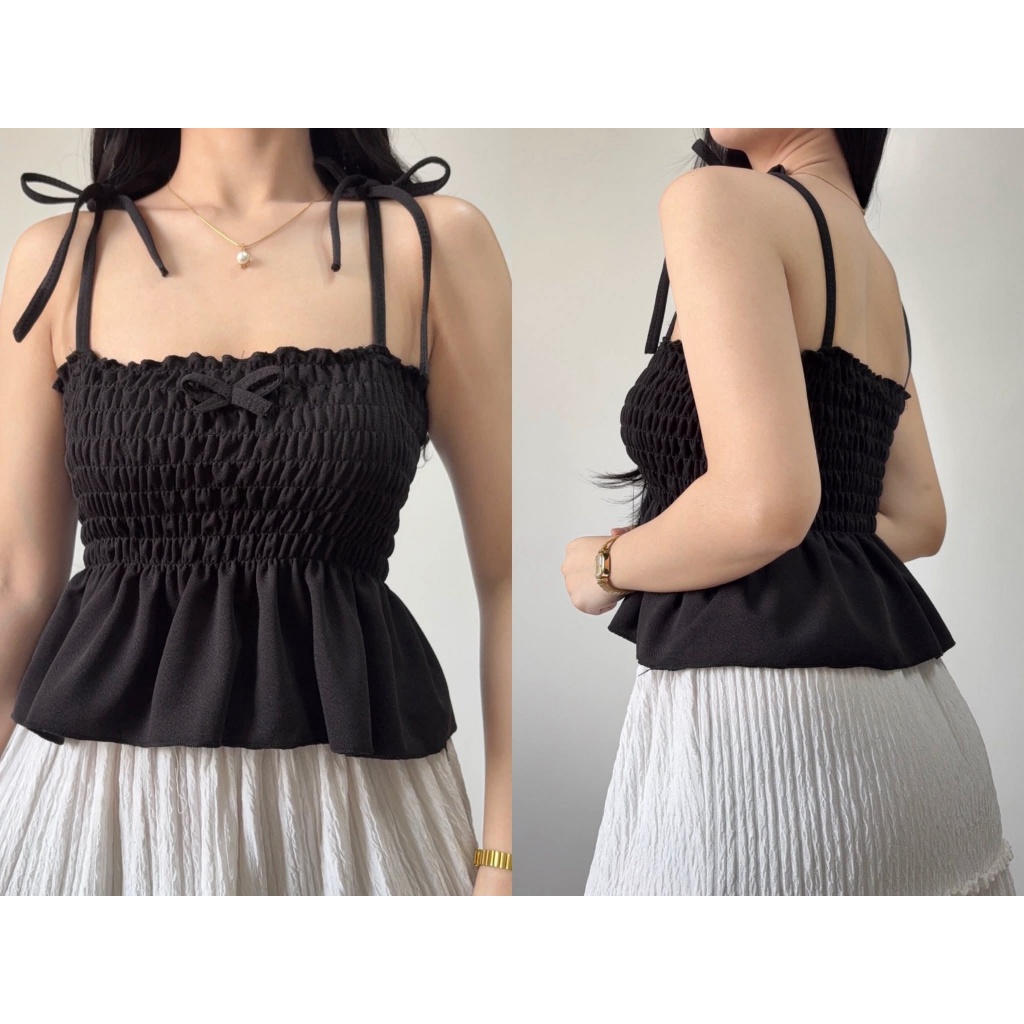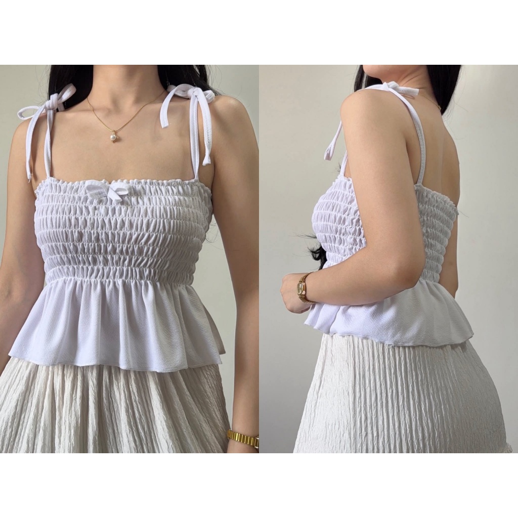 Nikka Smocking Self Tie Tube Top Ribbon Body Hugging Top For Women Womenswear Clothes Fit Medium Li