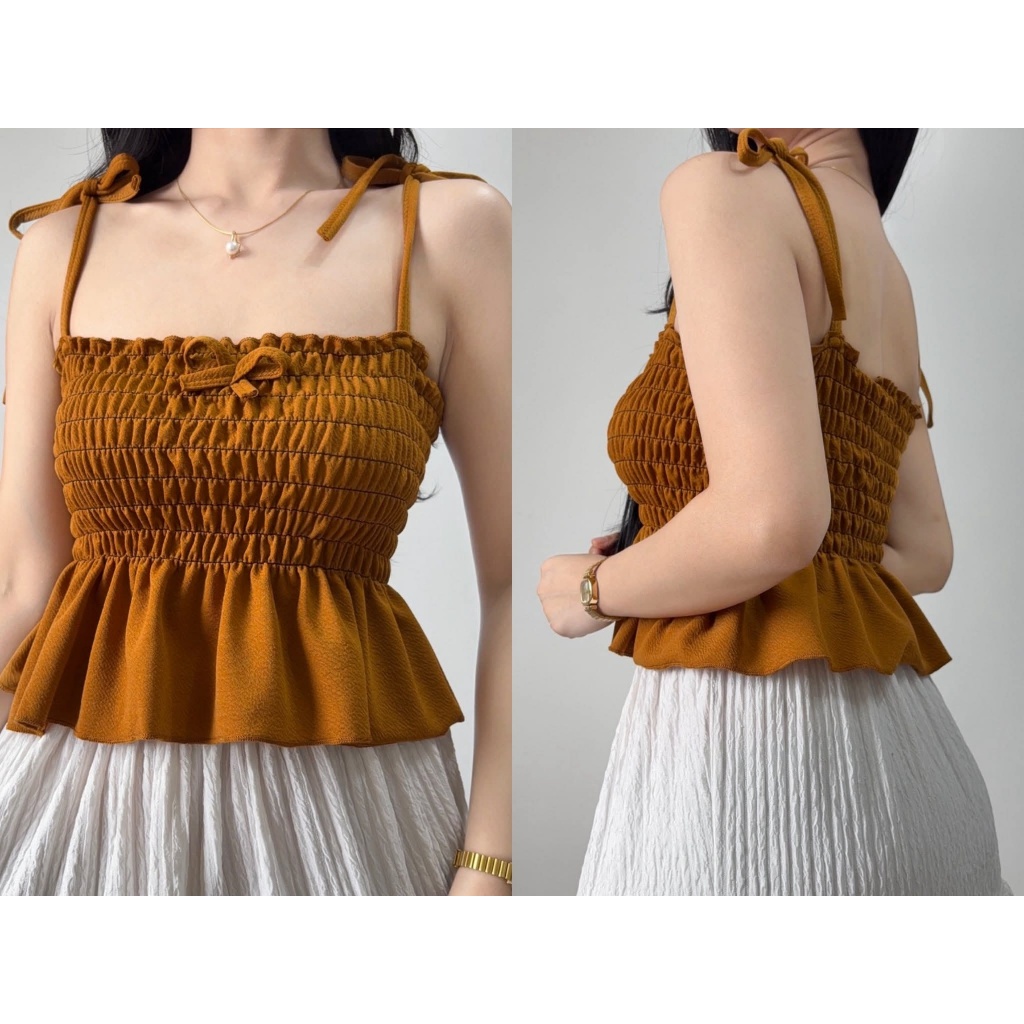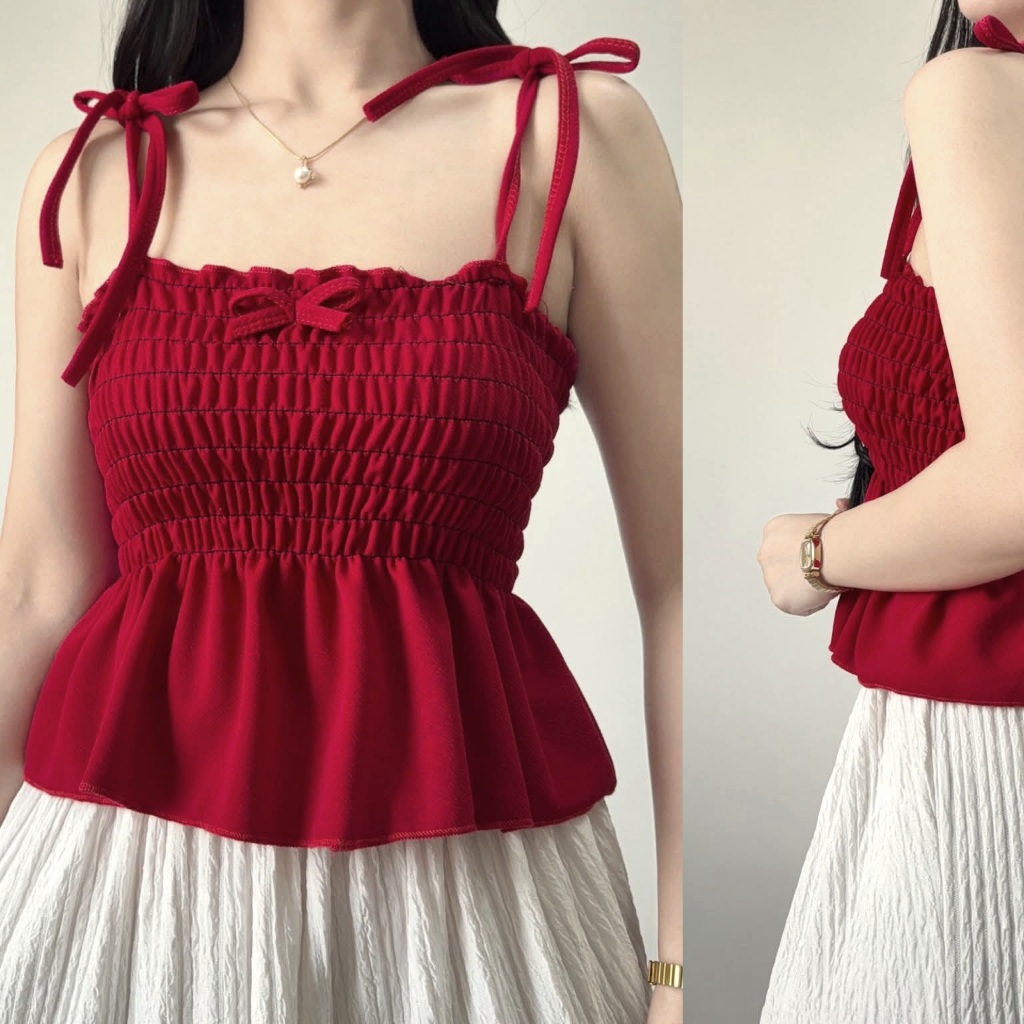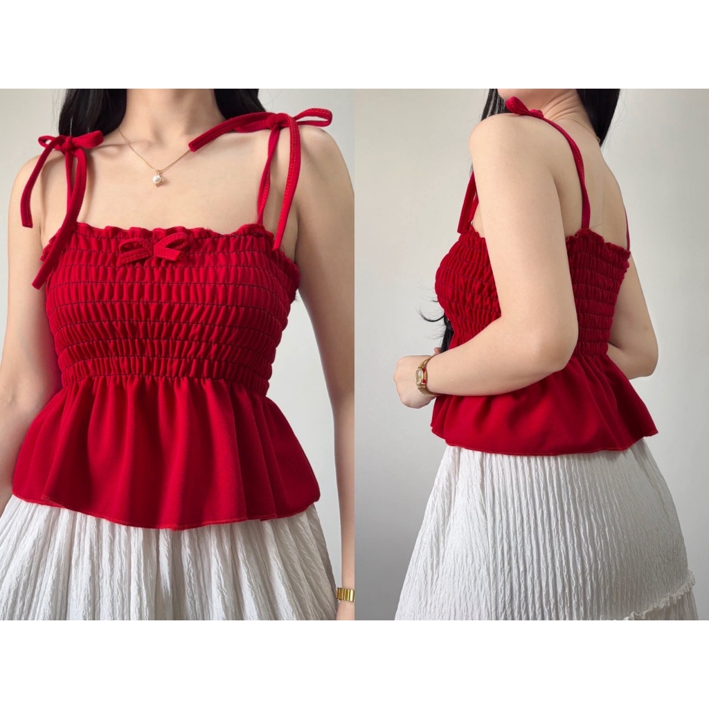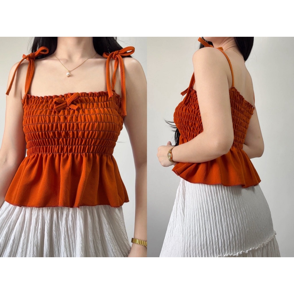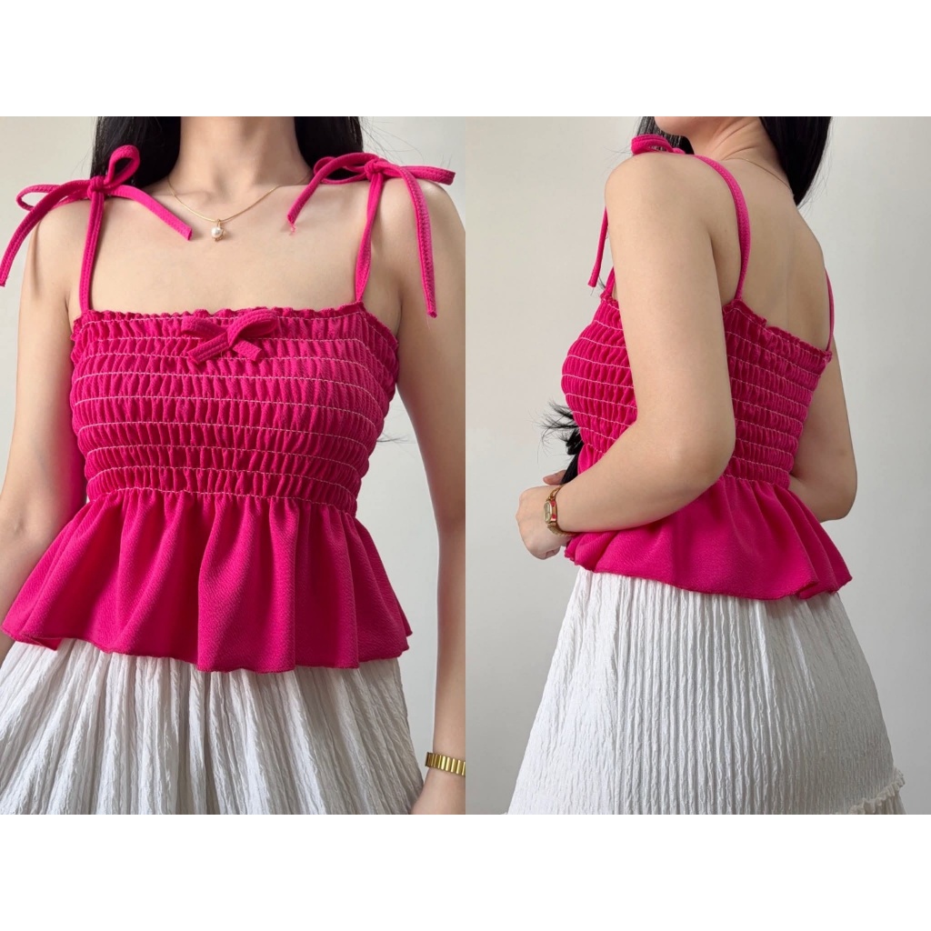 Nikka Smocking Self Tie Tube Top Ribbon Body Hugging Top For Women Womenswear Clothes Fit Medium Li