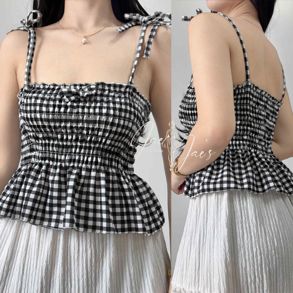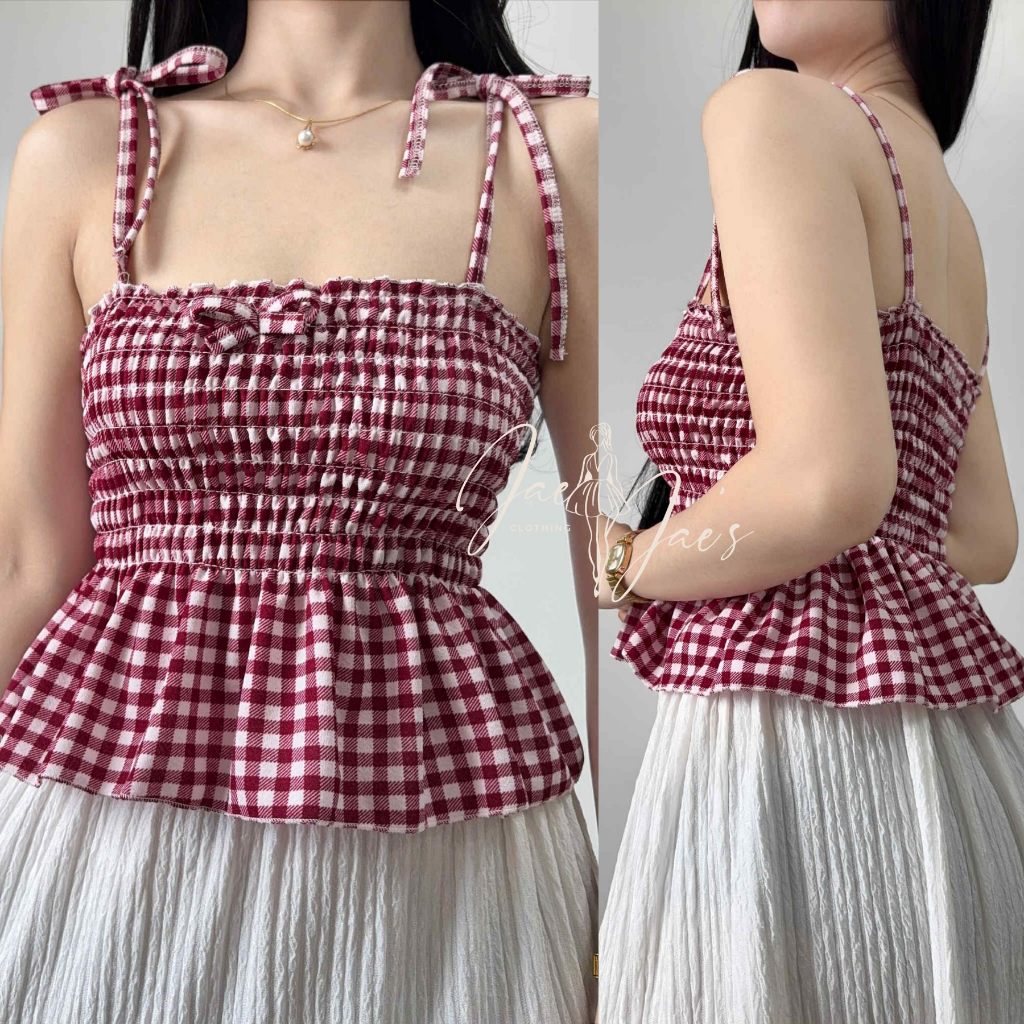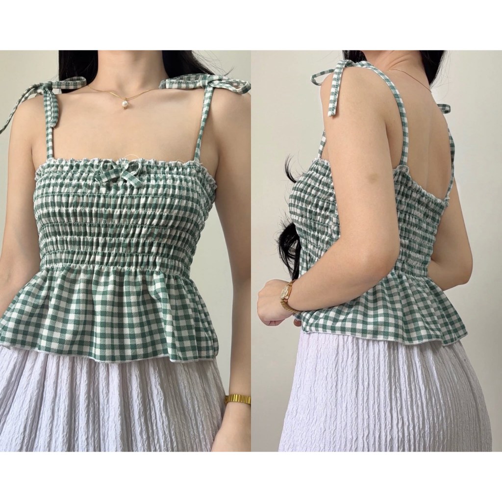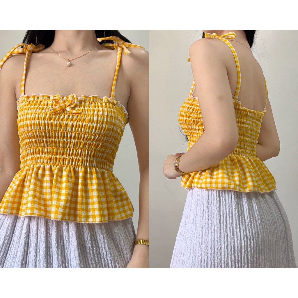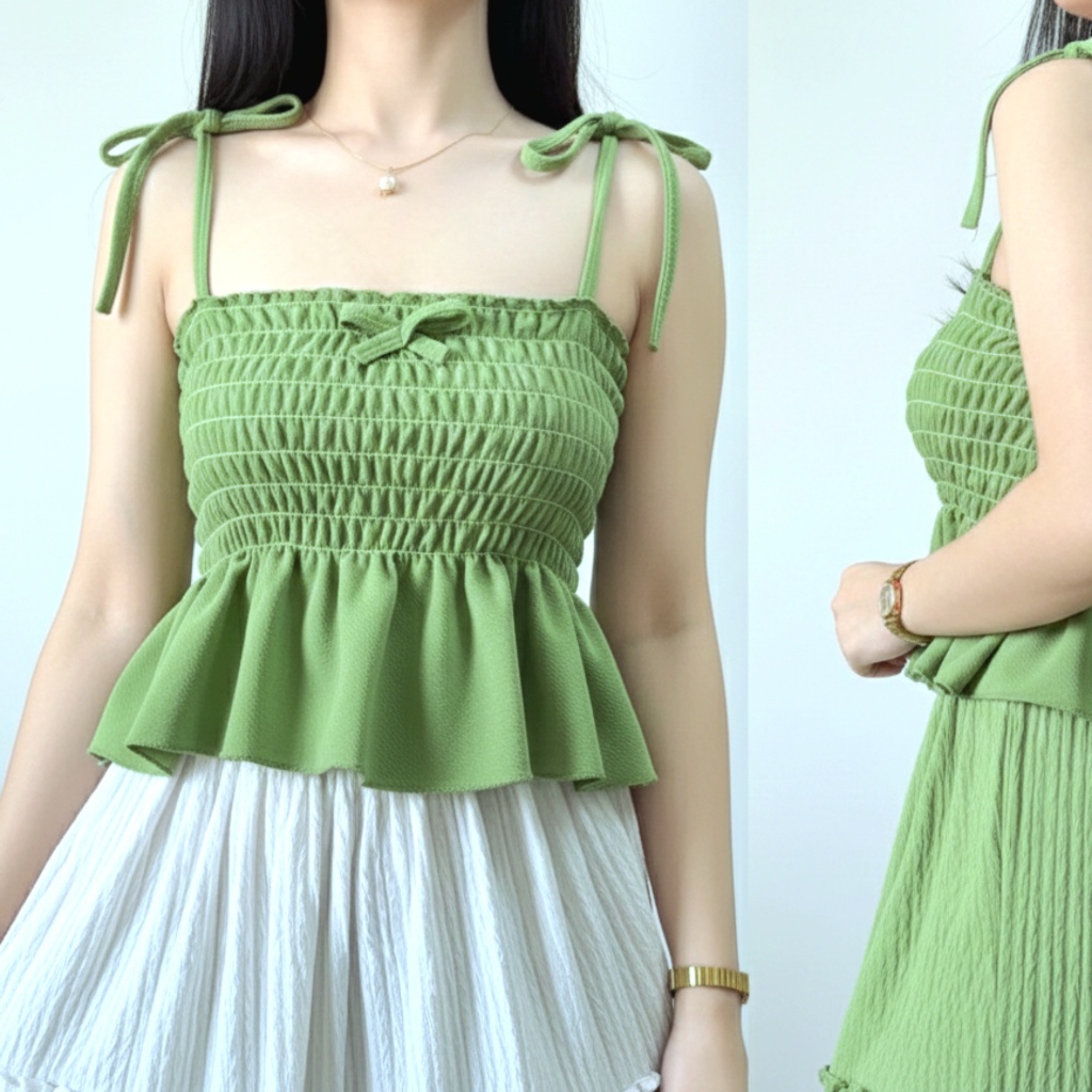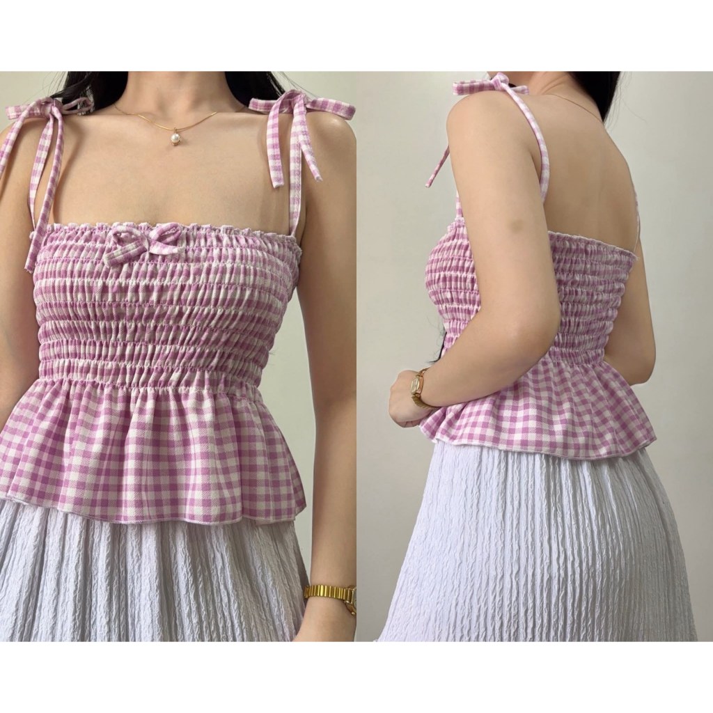 Nikka Smocking Self Tie Tube Top Ribbon Body Hugging Top For Women Womenswear Clothes Fit Medium Li