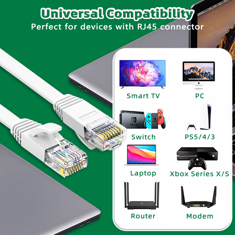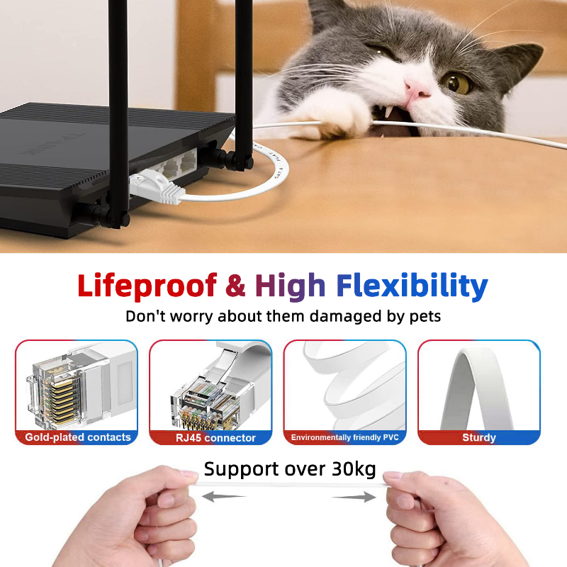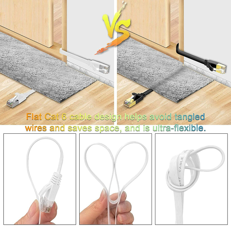 1M 2M 5M 10M 15M 20M 30M Flat Cat6 Ethernet Cable 1000Mbps Internet Cable RJ45 LAN Cable