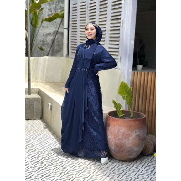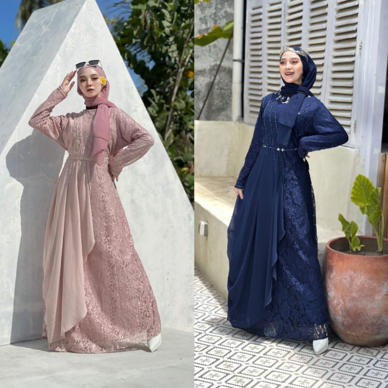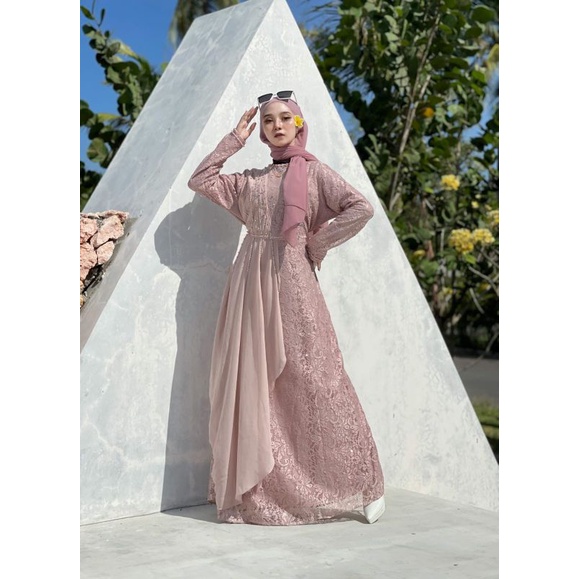 Louve Hijab : Brukat Dress_Ivory/grosir real pict/hangout