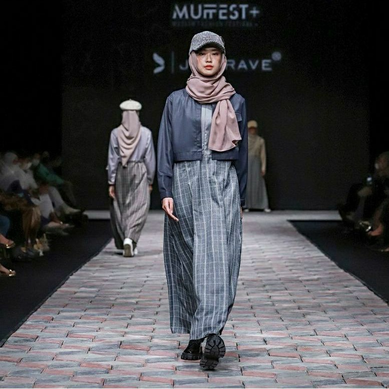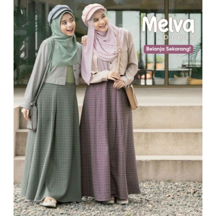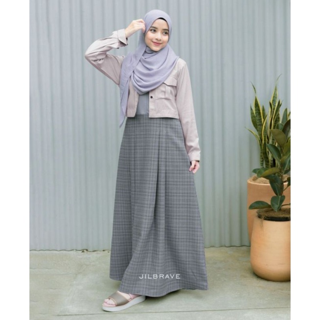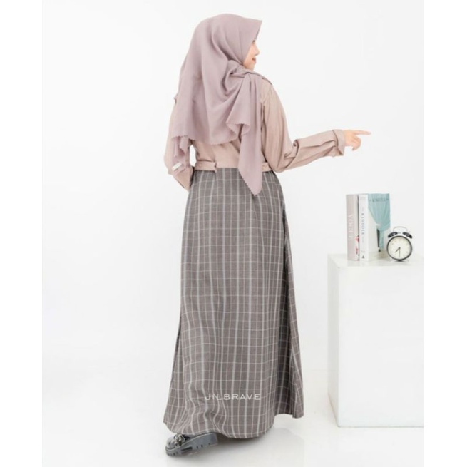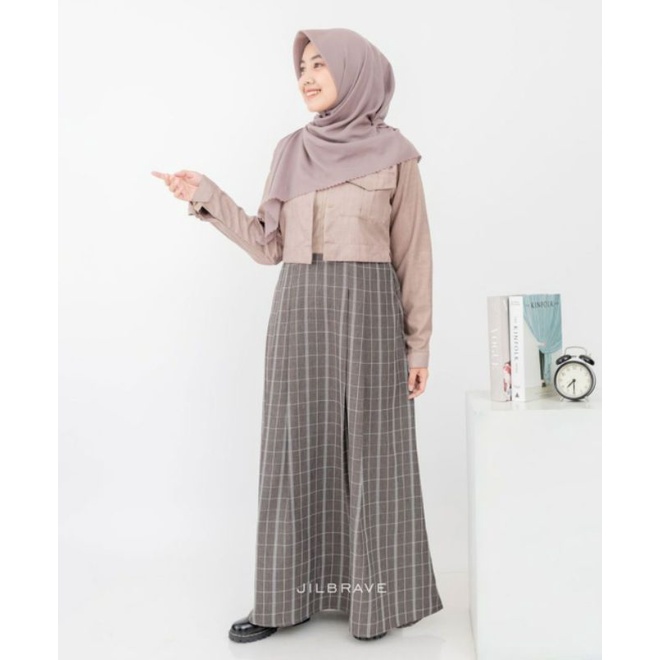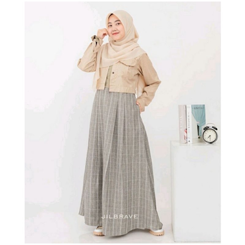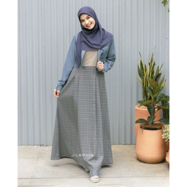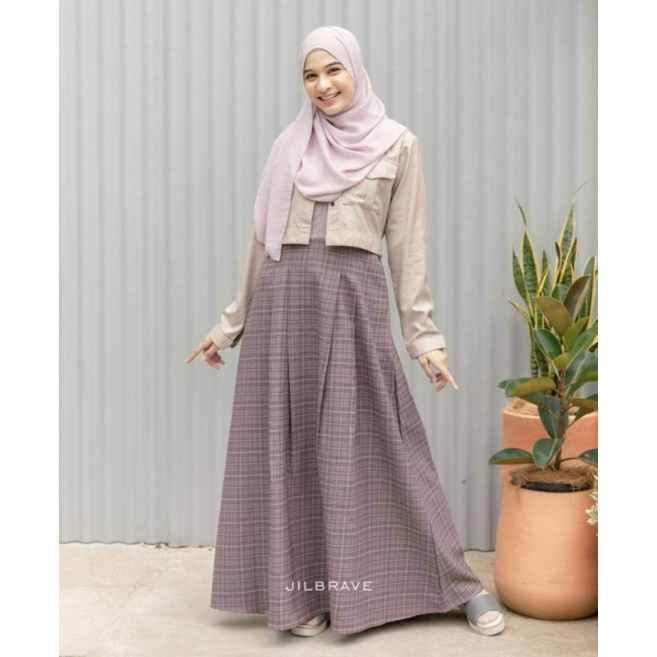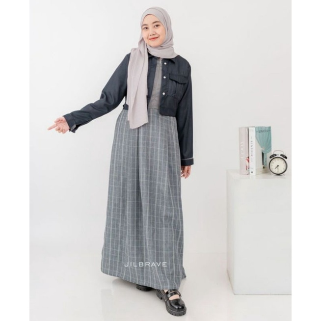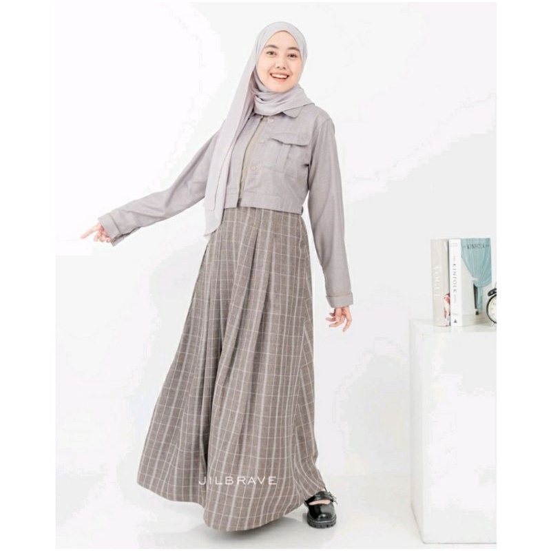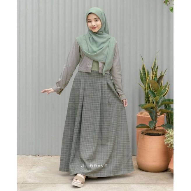 MELVA JILBRAVE DRESS Special Collection For Muffest 2022 Limited Edition | Stylish Gamis with Outer blends mixed with Semiwool Tartan skirt