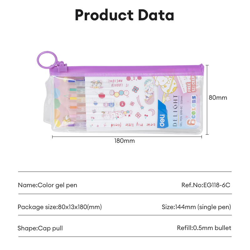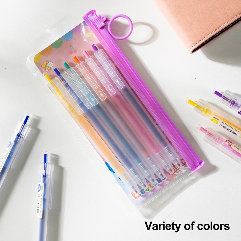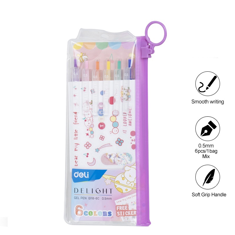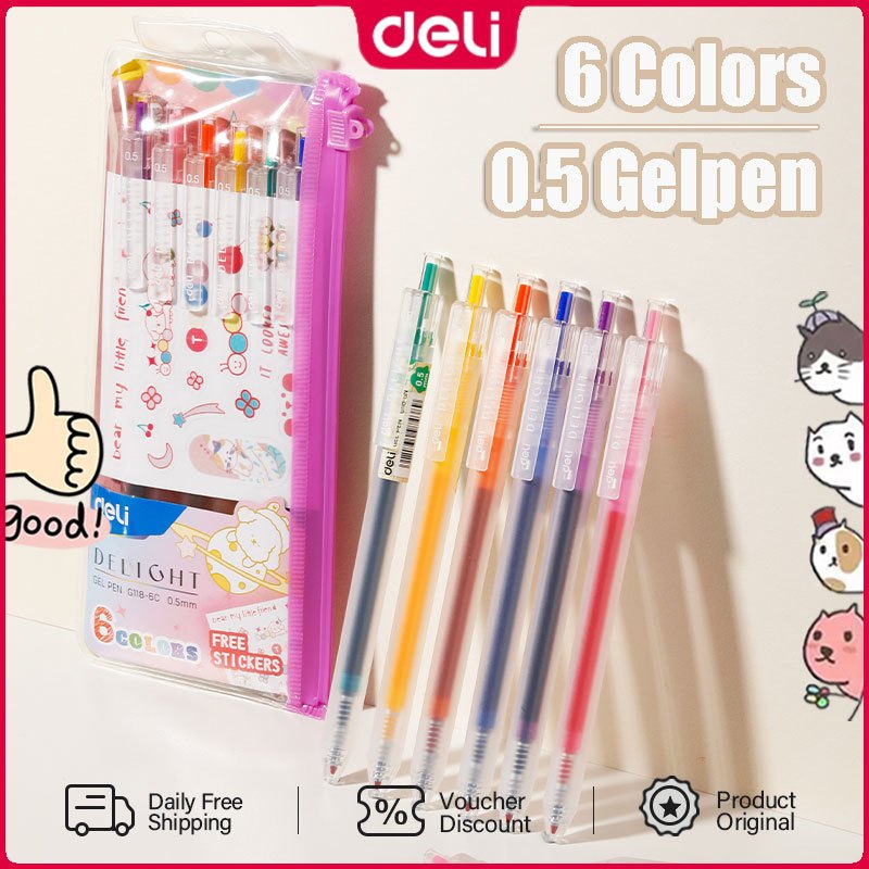 Deli 6Pcs/Set Color Gel Pen 0.5mm Press Colored Gel Pen Color Marker Pen School Supplies