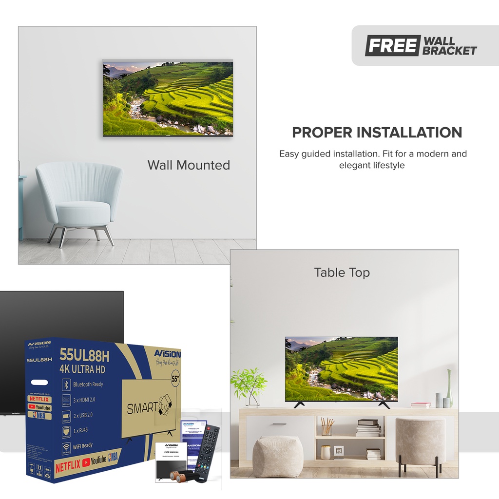 Avision 55 Inch Frameless 4K Smart Digital Bluetooth Led TV w/ Built-in Netflix,Youtube, NBA 55UL88H