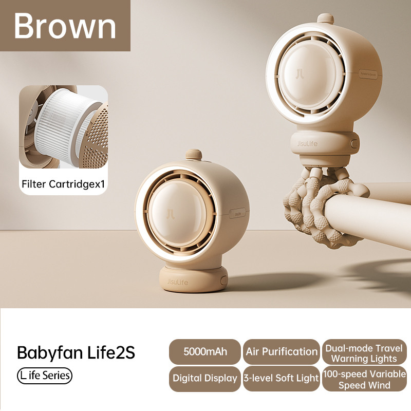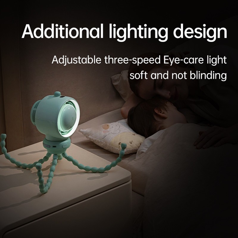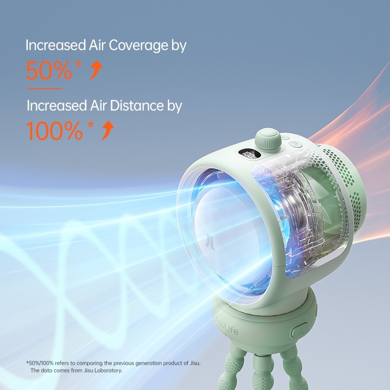 JISULIFE Stroller Fan Life2 Rechargeable Electric Clip Turbo Octopus Baby Fan 100 Speeds Strong Wind With Air Purification And Light For Car Crib Camping Emergency Desk Table