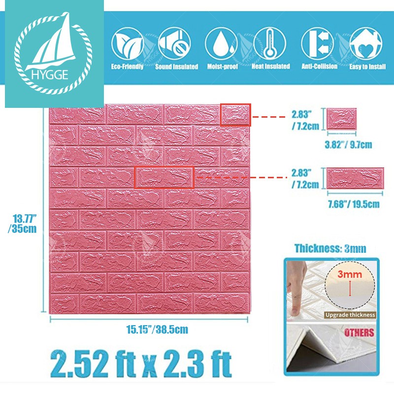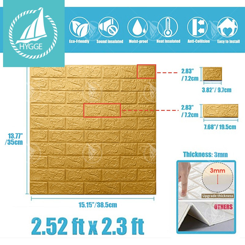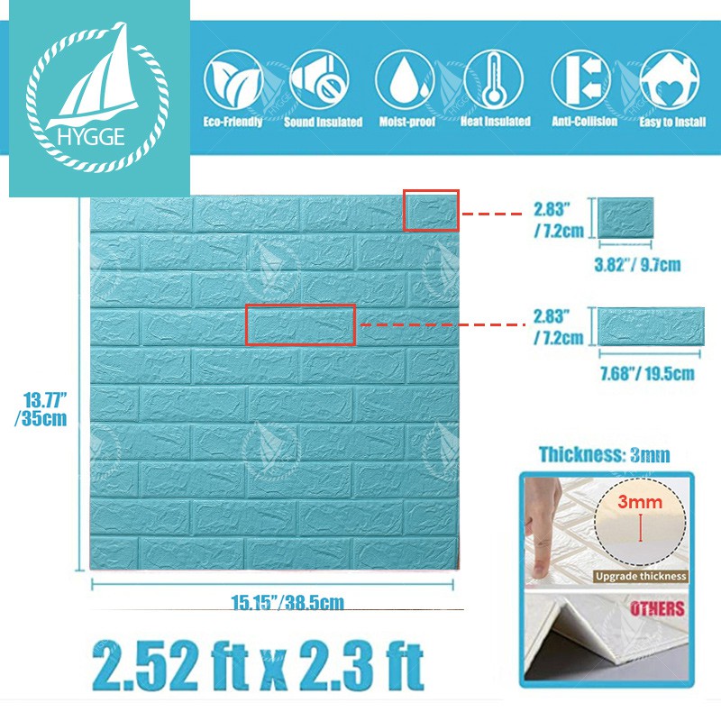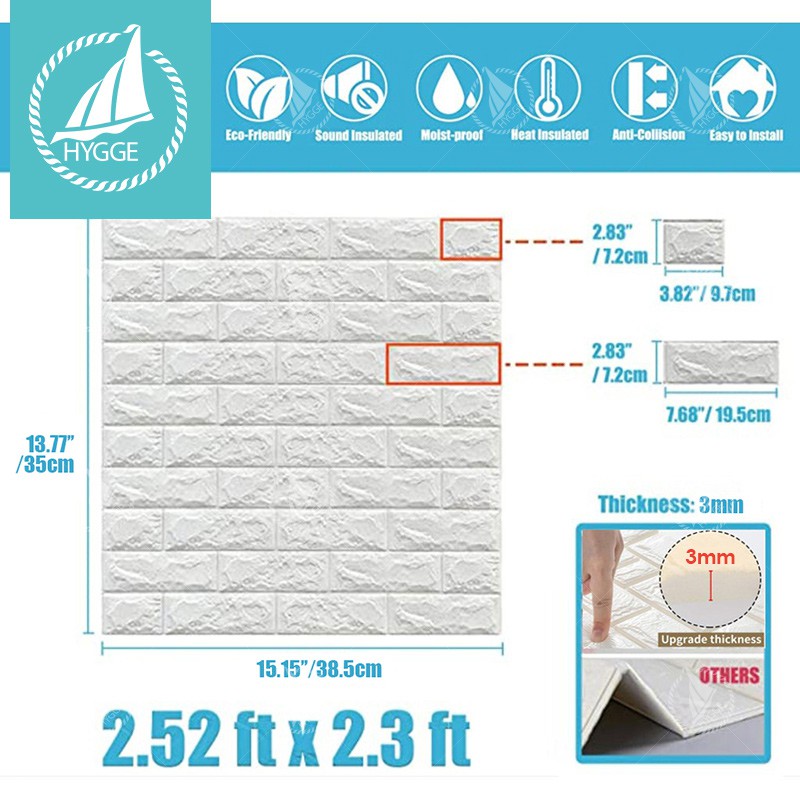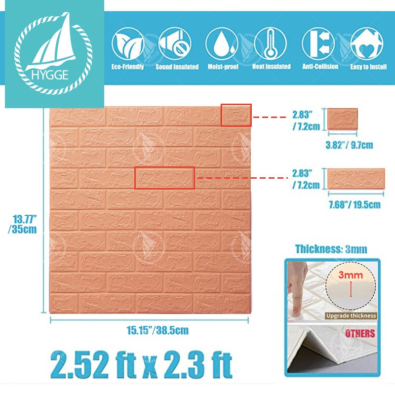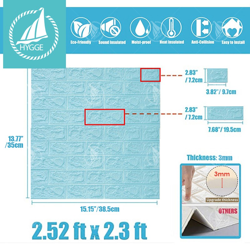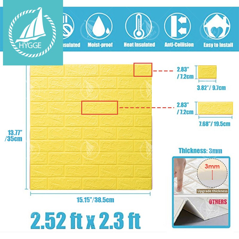HYGGE 1PCS DIY Self Adhensive 3D wall sticker Brick Living Room Decor Foam Waterproof Wallpaper wall paper adhesive wall decor