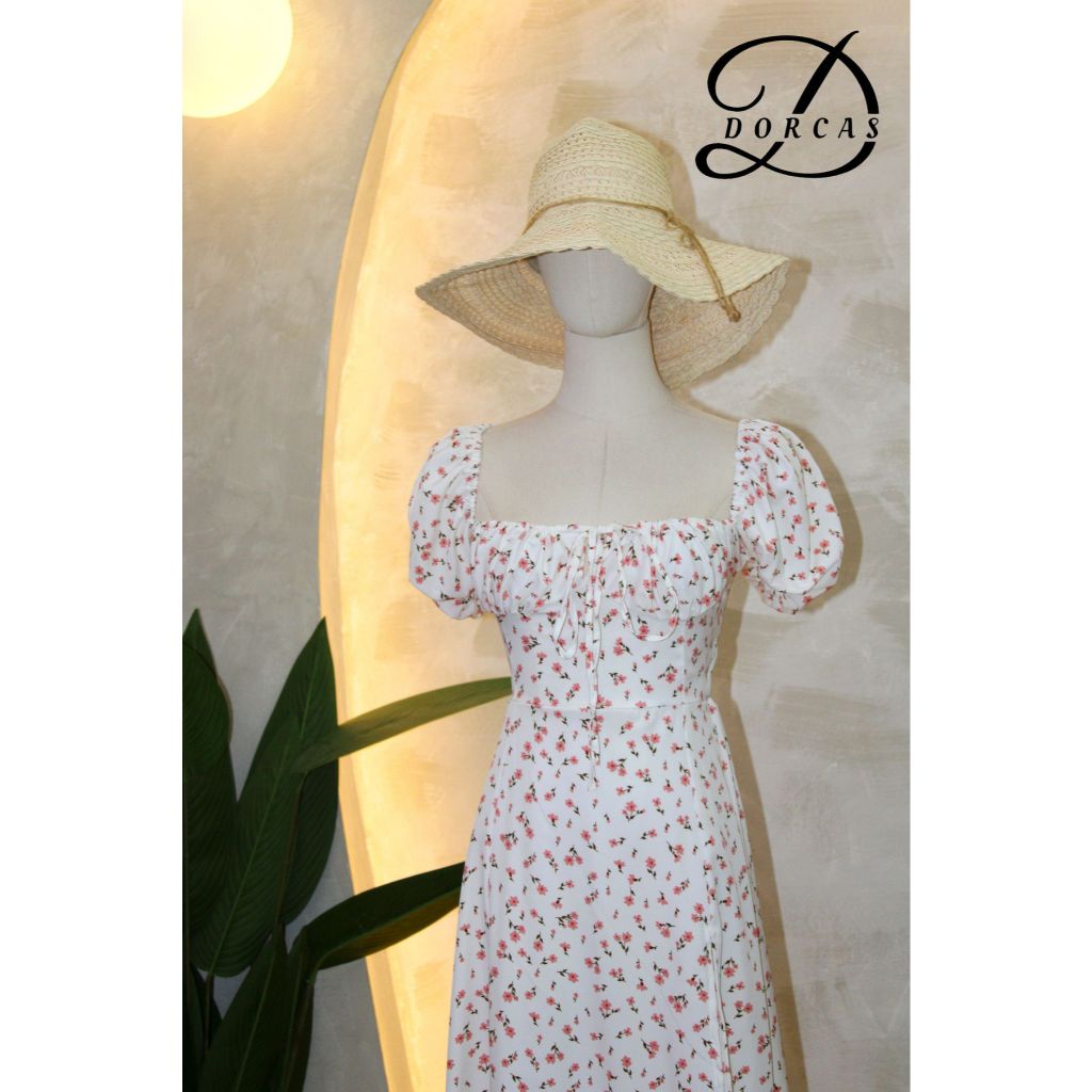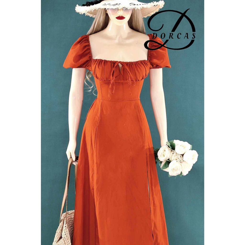 Brianna Maxi Dress Regular Ruched Drawstring Bustier Smocked Back Puffed Sleeves High Slit Maxi Dres