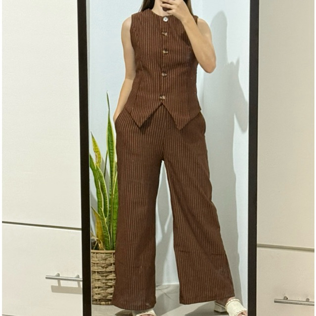 THEA Striped Stretchy Coordinates by sabel | Woven Fabric Set with Adjustable Belt