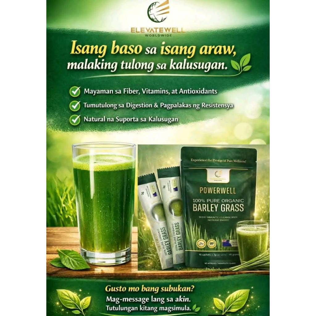 ELEVATEWELL Powerwell 100% Pure Organic Barley Grass - 15 Sachets 1 pack and 100 grams 1 pack