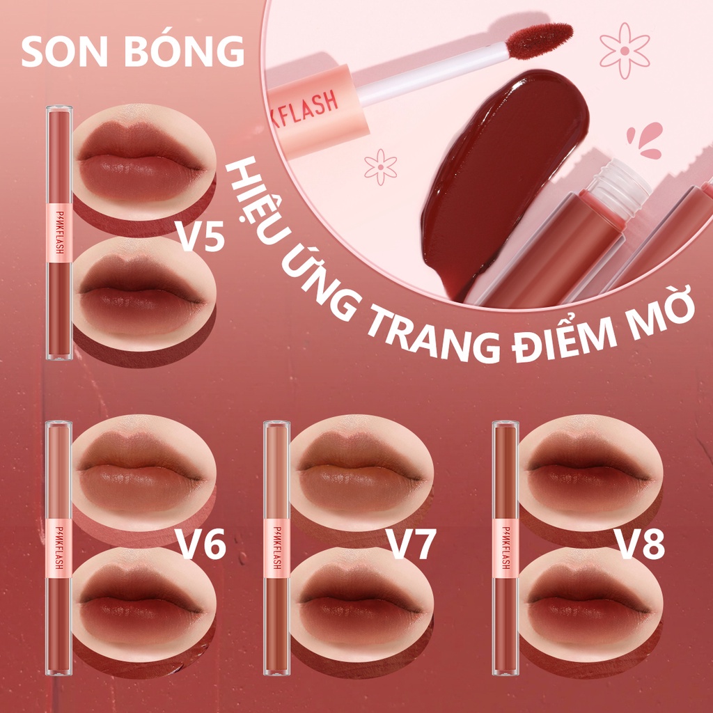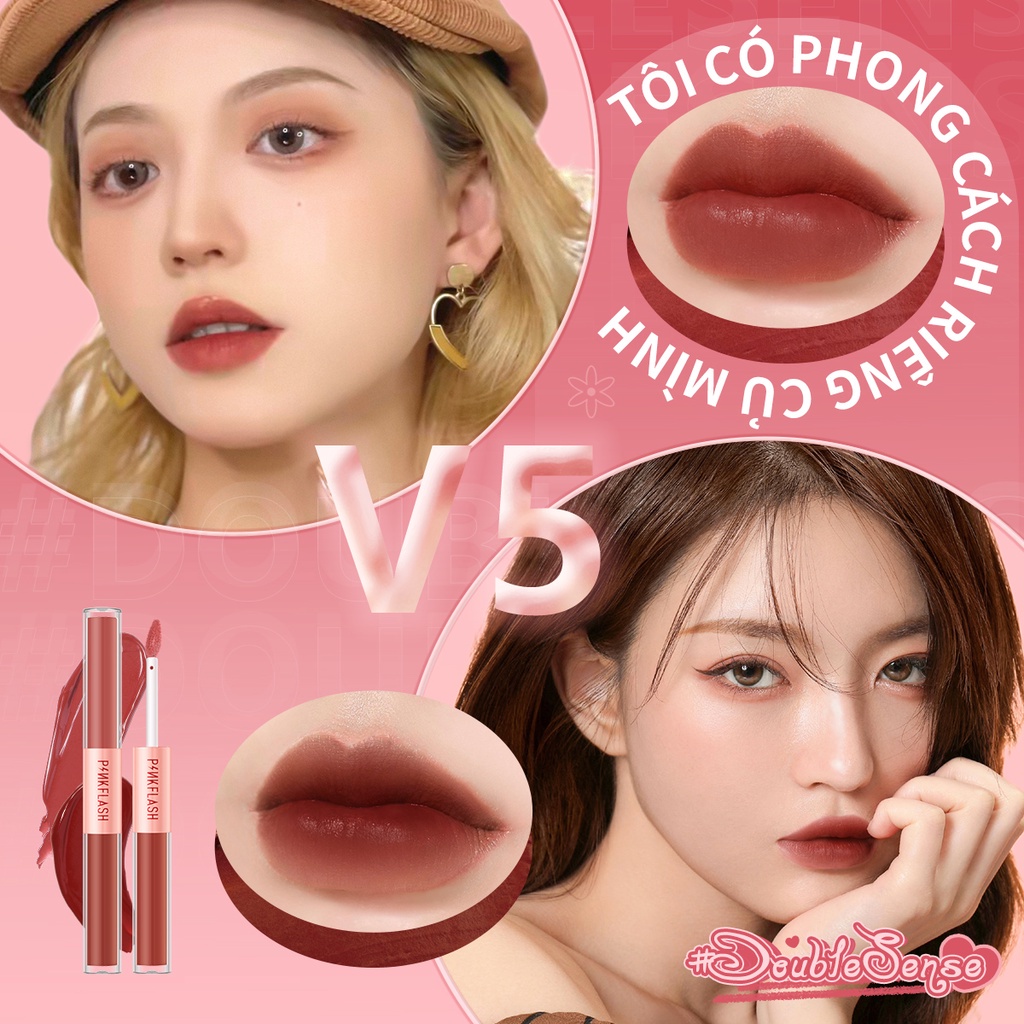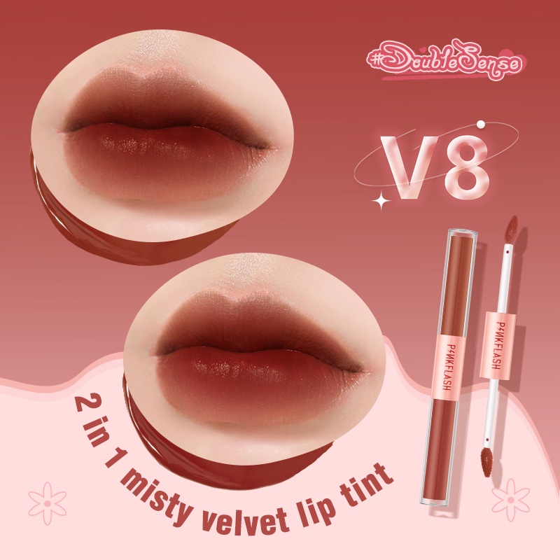 PINKFLASH 2 In 1 Matte Lipstick Dual-Ended Liquid Velvet Liptint Lasting Waterproof High Pigment Lipgloss