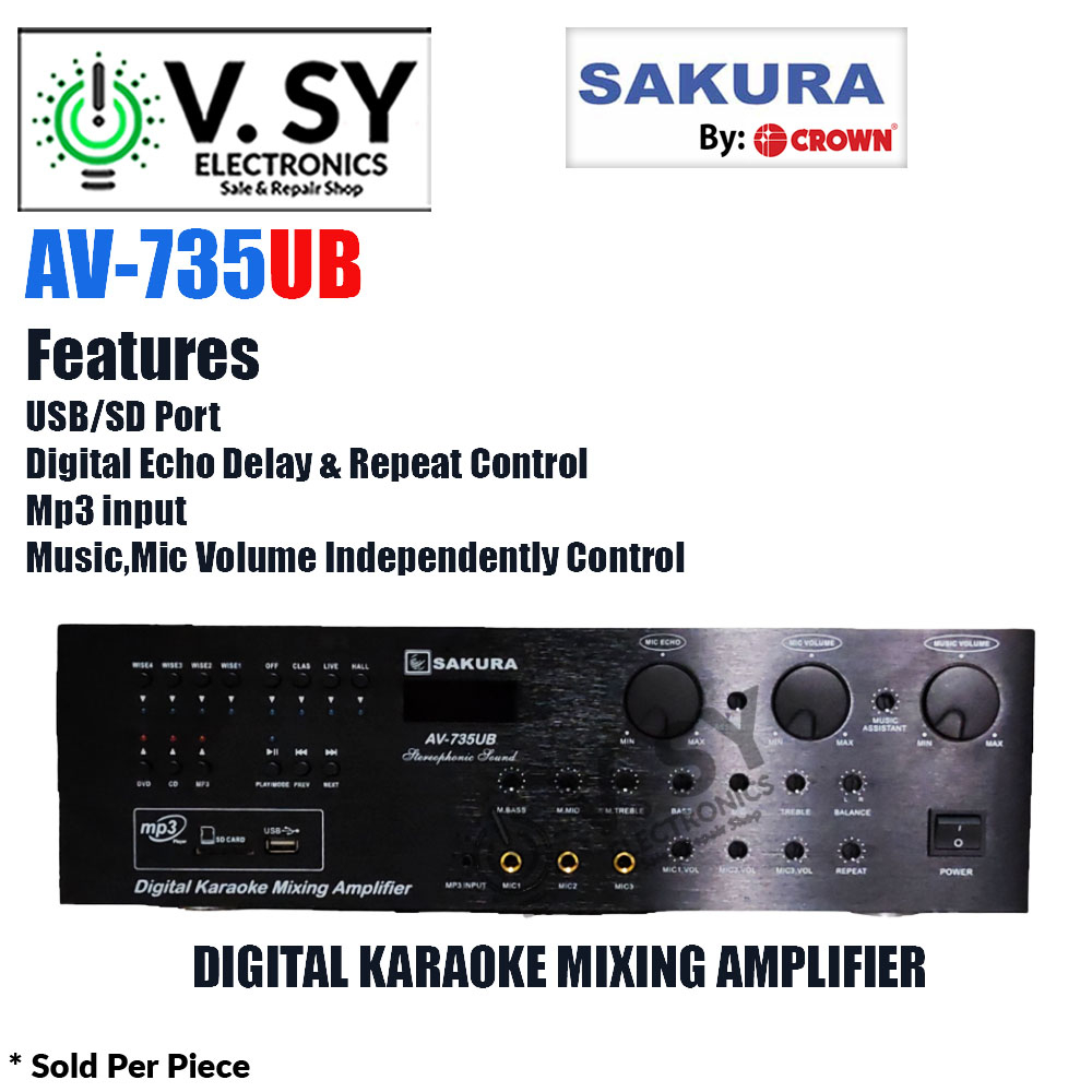 SAKURA AV-735/AV-735UB 700W - 1300W 4 / 8 Ohms Karaoke Mixing Professional Amplifier