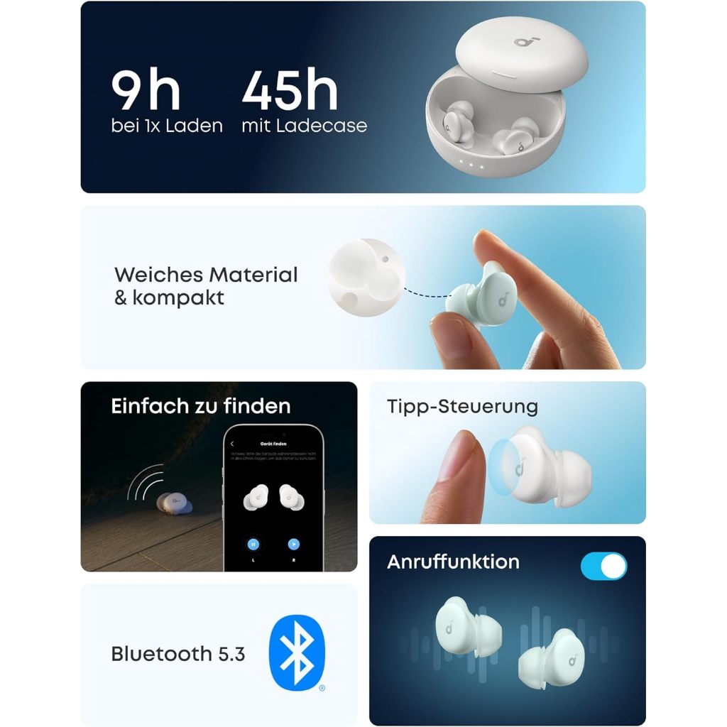 Soundcore(Anker) Sleep A30 Smart ANC Earbuds Active Noise Cancelling Sleep Headphones Adaptive Snore-Masking System Ultra-Comfort for Side Sleepers D1301