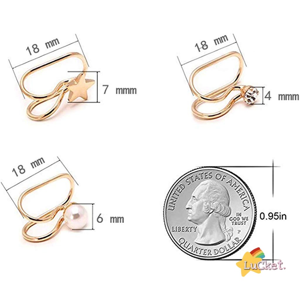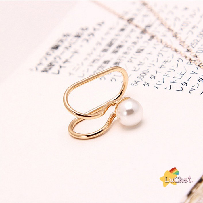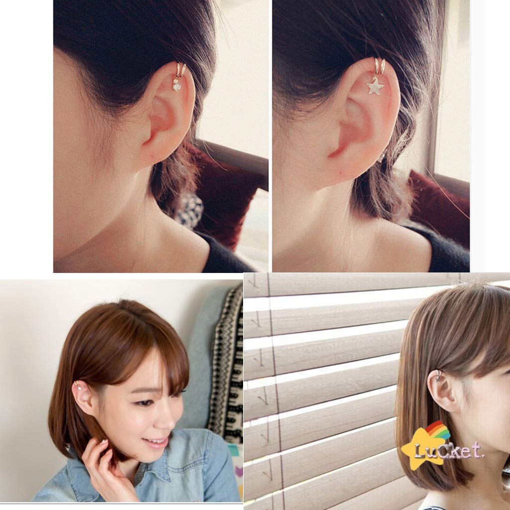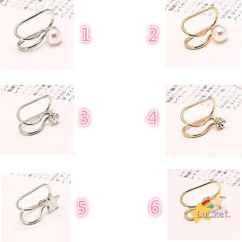 lucket Korea Fashion Single Diamond Cuff Ear Clip Pearl Star Heart Moon Earring Jewelry Accessories