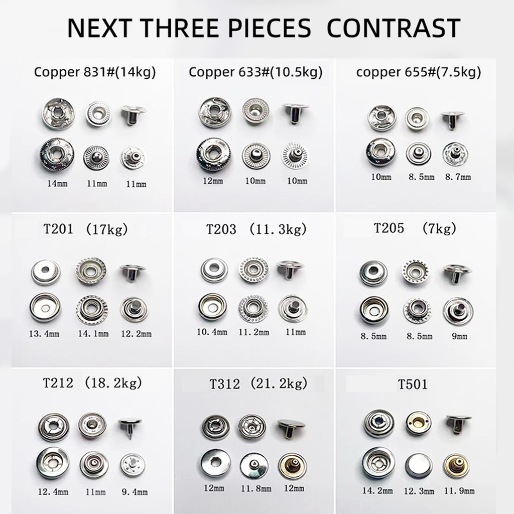 20 sets Stainless Steel | Snaps Button | Snap Fasteners Press | 10mm #655, 12.5mm #633, 15mm #831