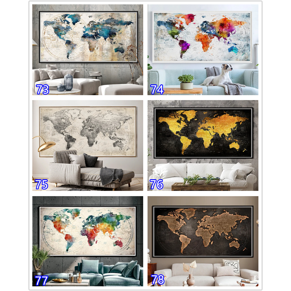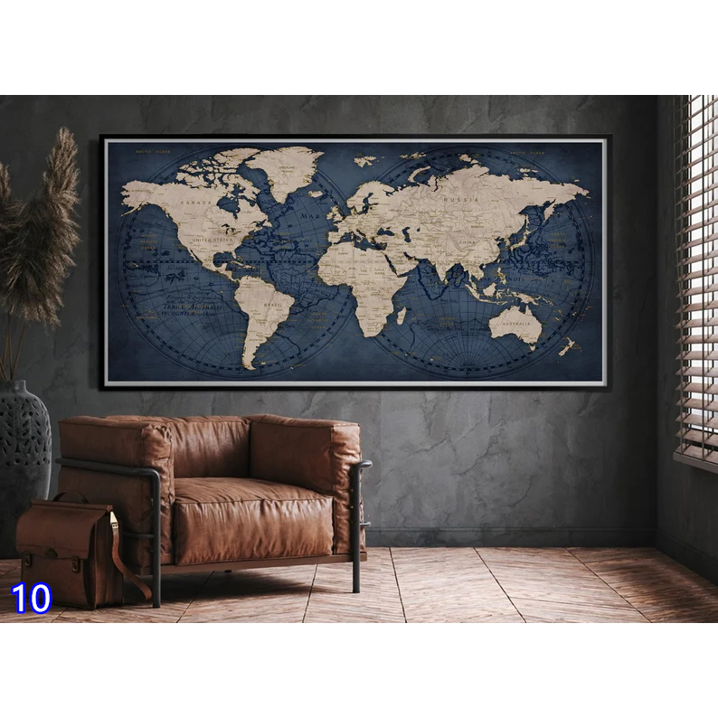 【78 Designs】World Map Wall Art Push Pin Map Poster, Extra Large Travel Map Wall Decor, PushPin Wall Map 5th Anniversary Gift, Modern Wall Art