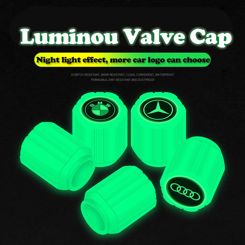 4PCS Universal Luminou Tire Valve Cap Car Wheel Valves Tyre Nut Stem Air Caps Cover Car Accessories For Bike Motorcycle