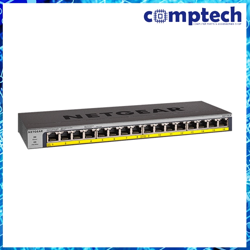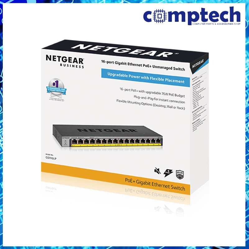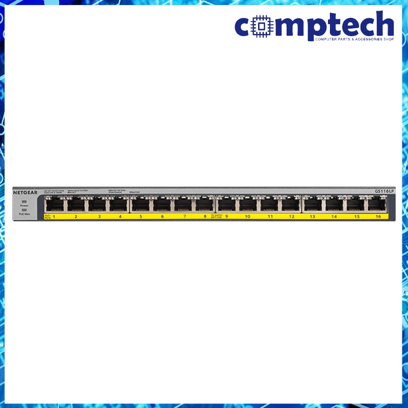 16-Port Gigabit Ethernet Unmanaged PoE/PoE+ Switch w/ FlexPoE - 76W - GS116LP