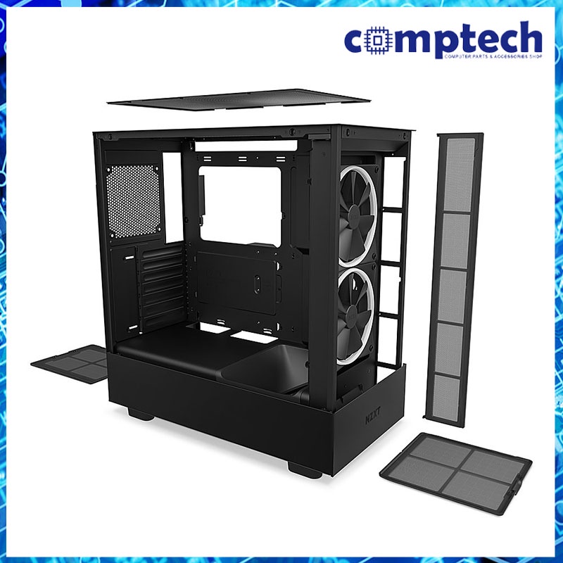 NZXT H5 Elite - Matte Black / White Premium Compact Mesh Mid-Tower Case 2x F140 RGB Fans + 1x F120Q