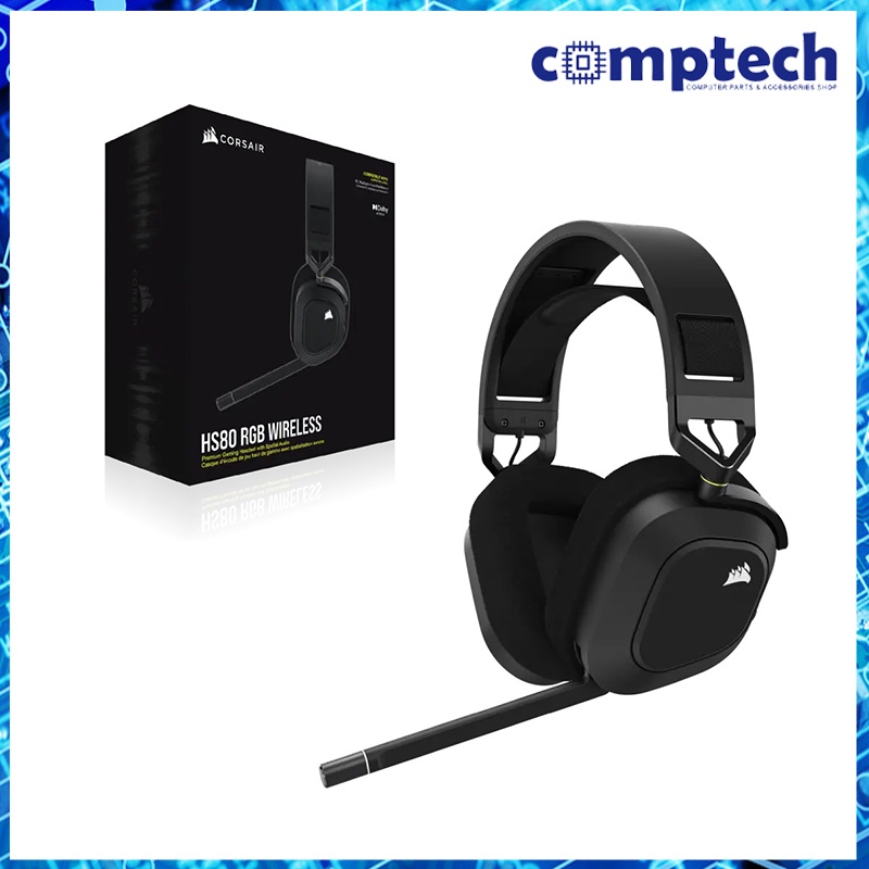 CORSAIR HS80 RGB WIRELESS PREMIUM GAMING HEADSET W/ SPATIAL AUDIO- CARBON / WHITE