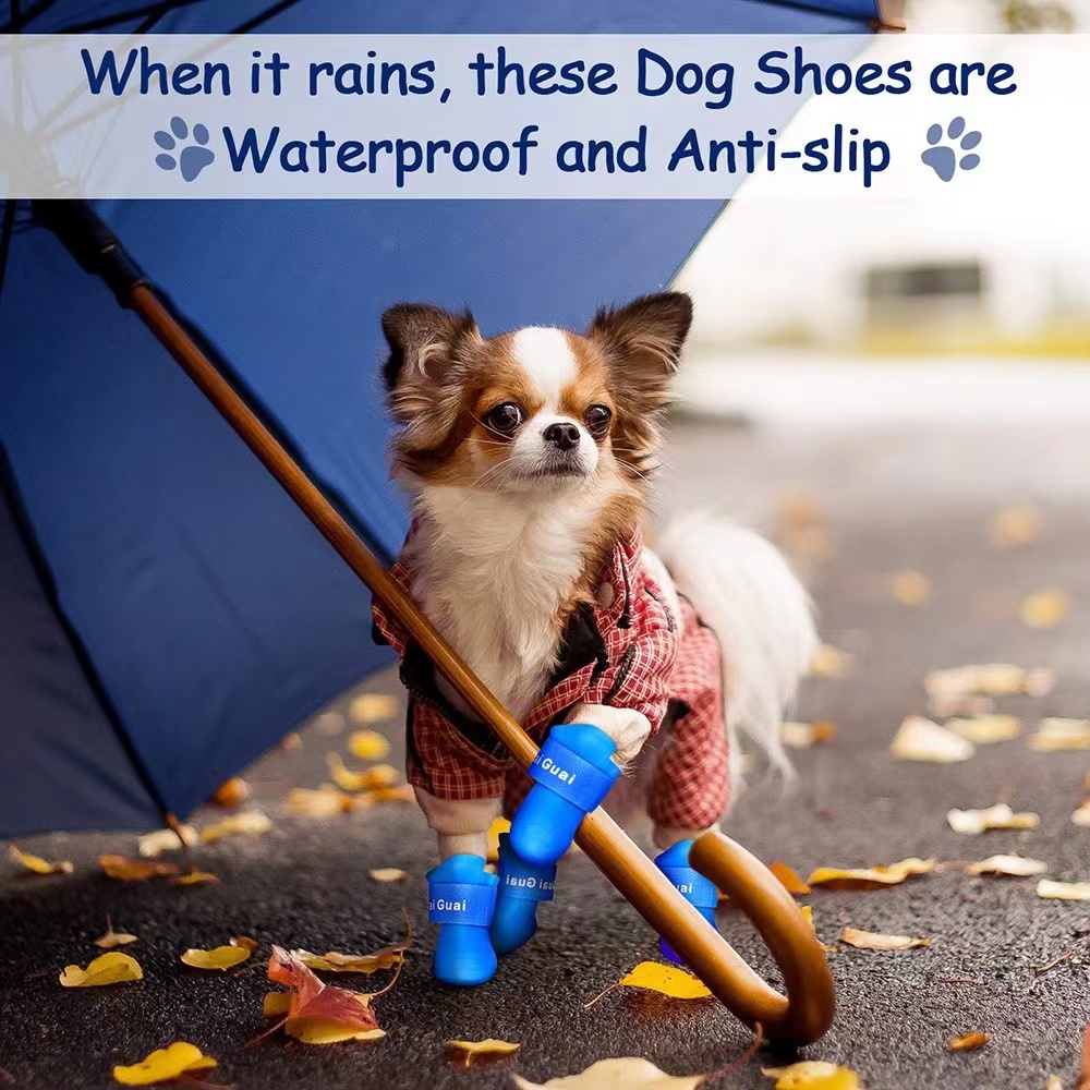 4pcs/set Pet Rain Shoes Dog Silicone Antiskid Rain Boots Candy Color Pets Waterproof Shoes Puppy Rai