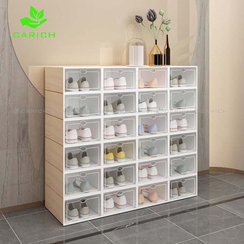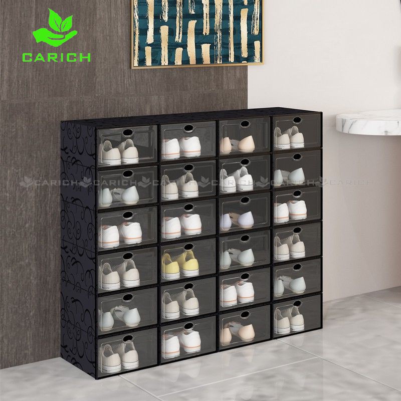 Printed Pattern Pull Shoe Box Storage Organizer Case Stackable Foldable Rack Thickened DIY