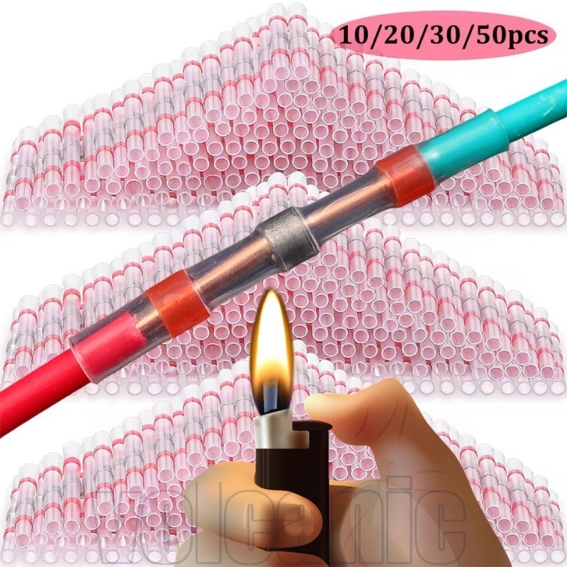 10/20/30/50Pcs Cable Waterproof Heat Shrink Connectors - Durable Corrosion-resistant - Automotive Repair Shielded Solder - Plastic Tin Alloy Insulated Wire Kit - Seal Cable Sleeve