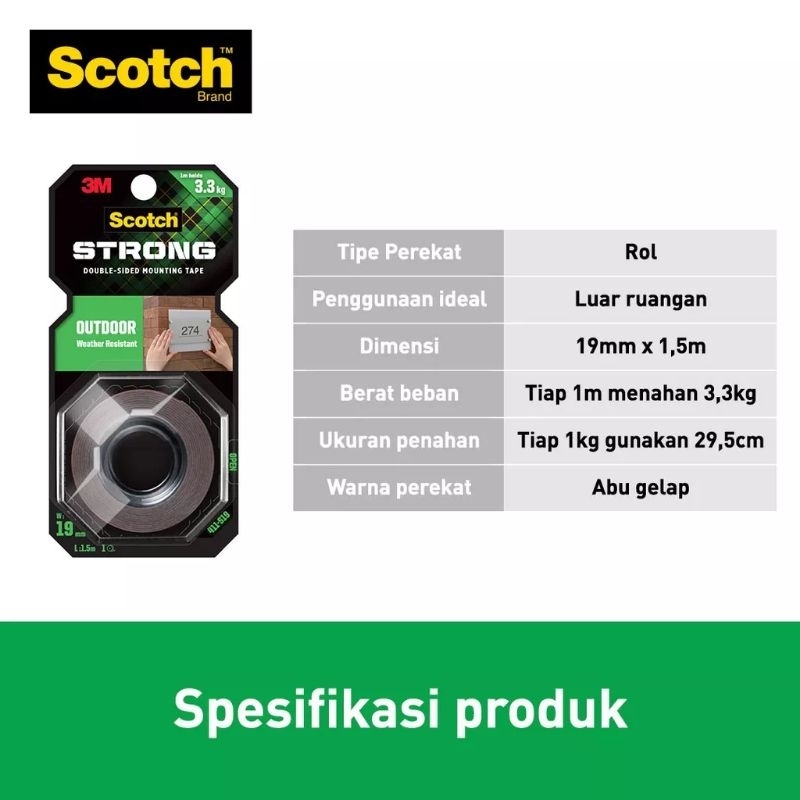 Scotch Strong Double Sided Mounting Tape Outdoor 3.3Kg 411-S19 19mm X 1.5m Outdoor Mounting Tape Adhesive/ 411-S19 19mm X 1.5m