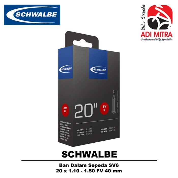 Schwalbe Bicycle Inner Tube SV6 20x1.10-1.50 FV 40mm
