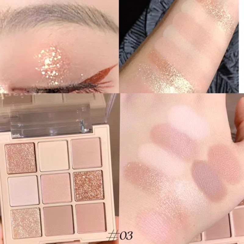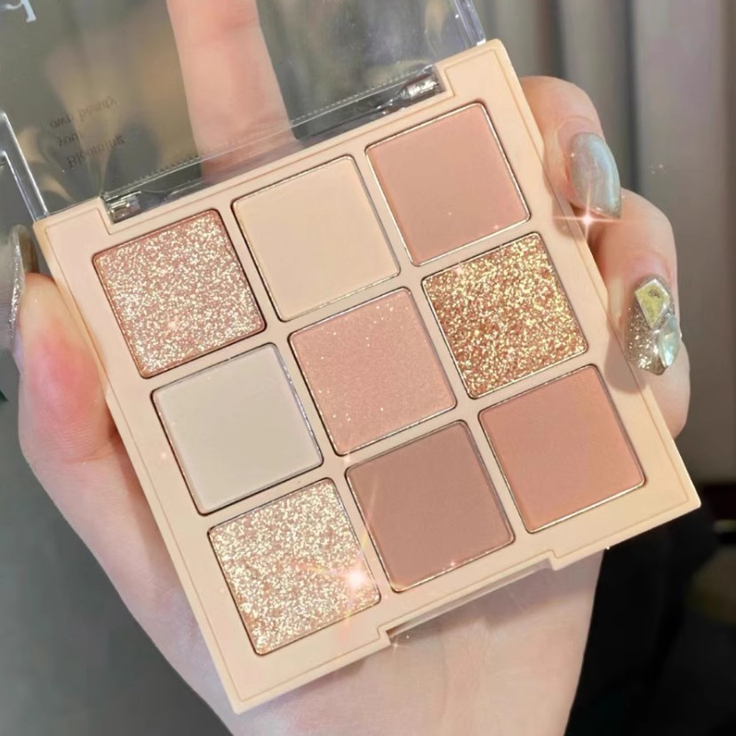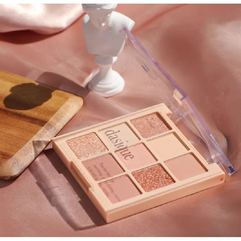 DASIQUE Nine Color Eye Shadow Plate Highlights 代曦可九色眼影盘高光修容 Powder Blusher All-In-One Plate Milk Tea, Matte, Shiny And Versatile Pearl Glitter Eyeshaw Eye Makeup