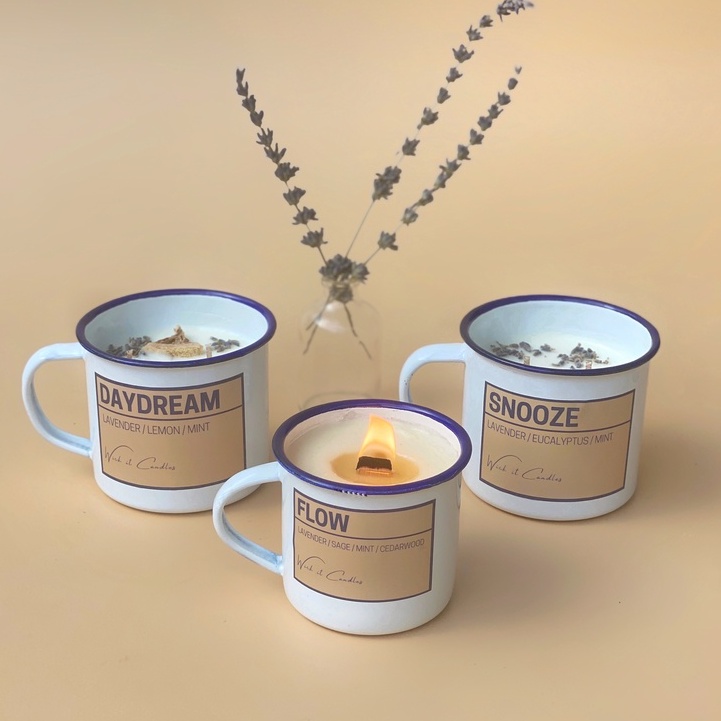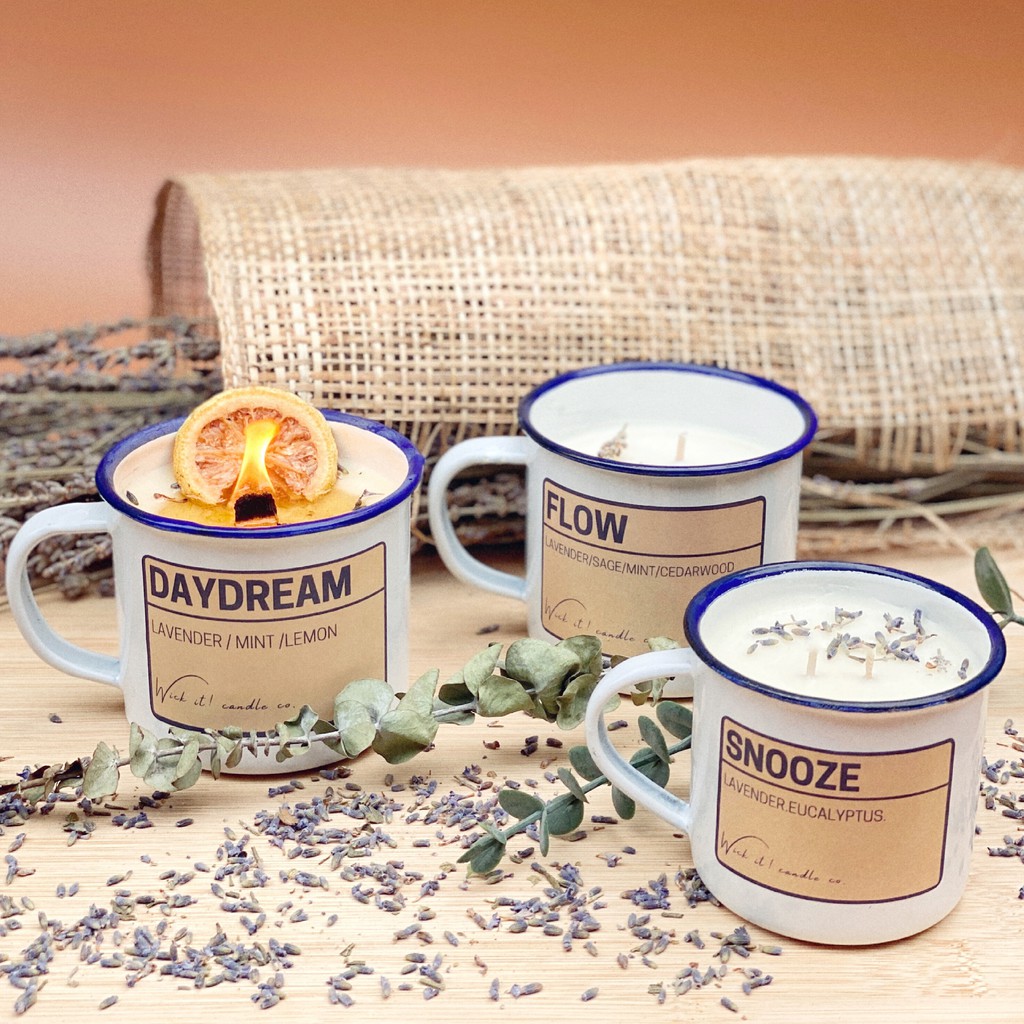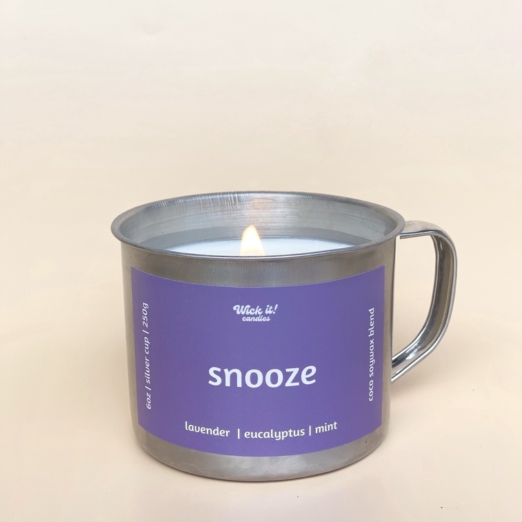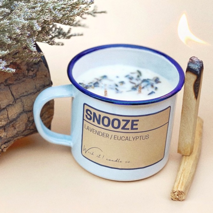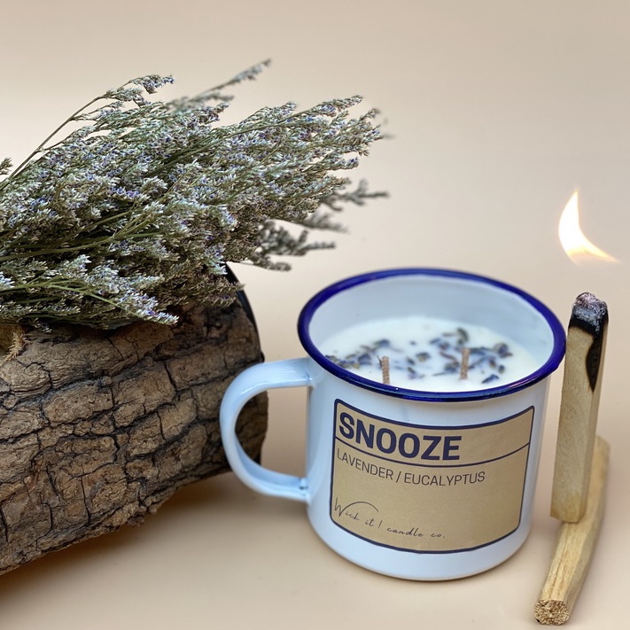 Wick It! Candles | SNOOZE | Lavender, mint & eucalyptus| 100% soy candle in retro enamel cup