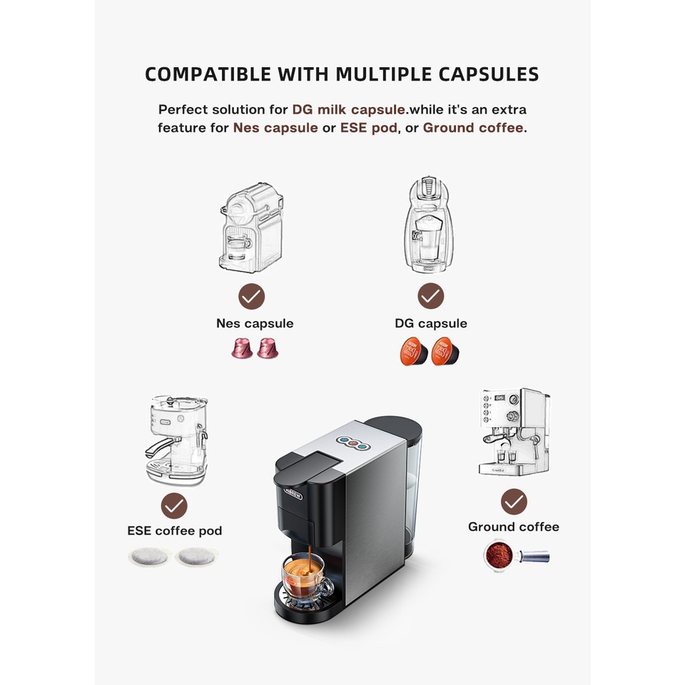 HiBREW 5 in 1 multiple Espresso Coffee Machine machine Espresso Maker,DG NS capsule