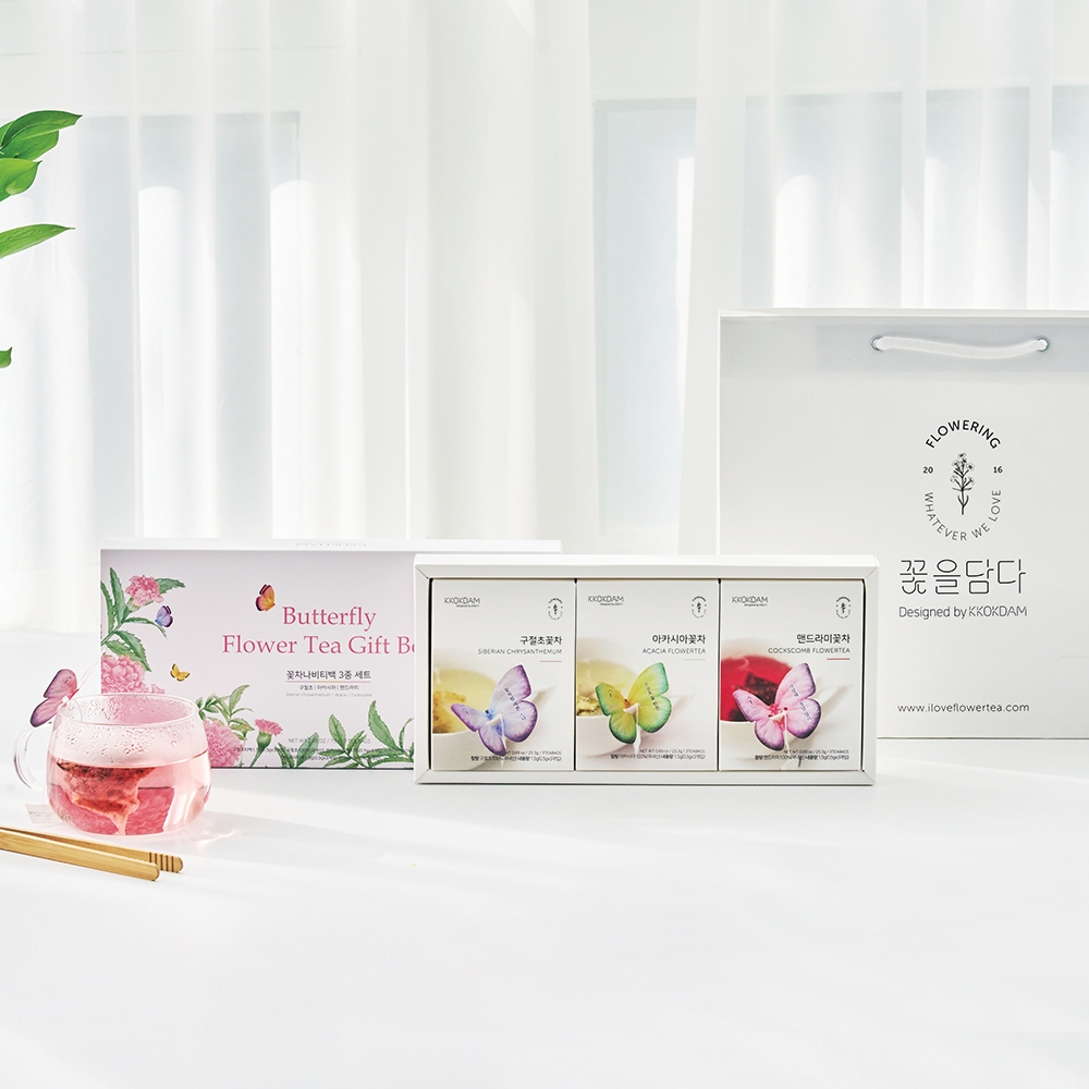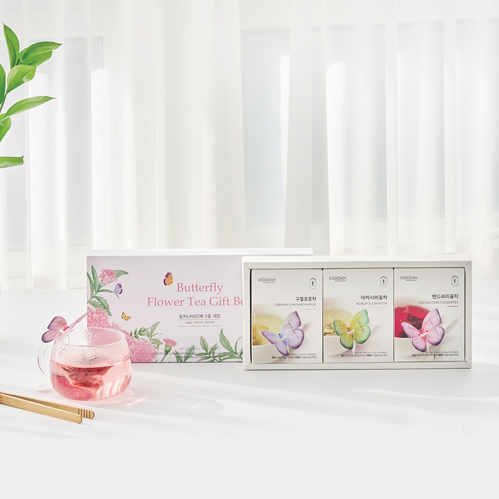KKOKDAM 3 FlowerTeabags With Butterfly holder Pink