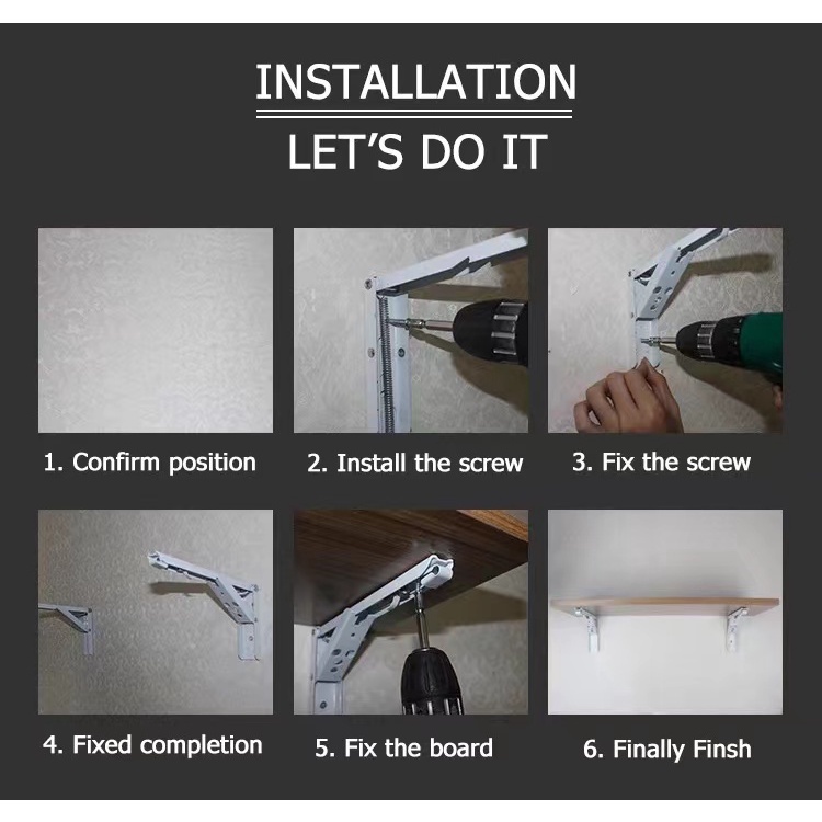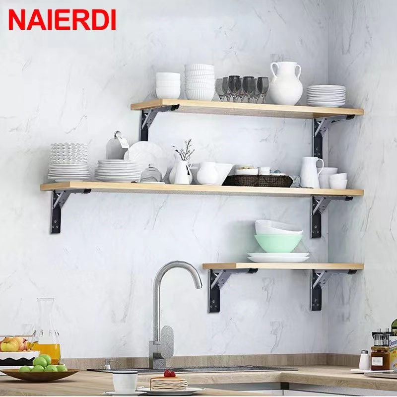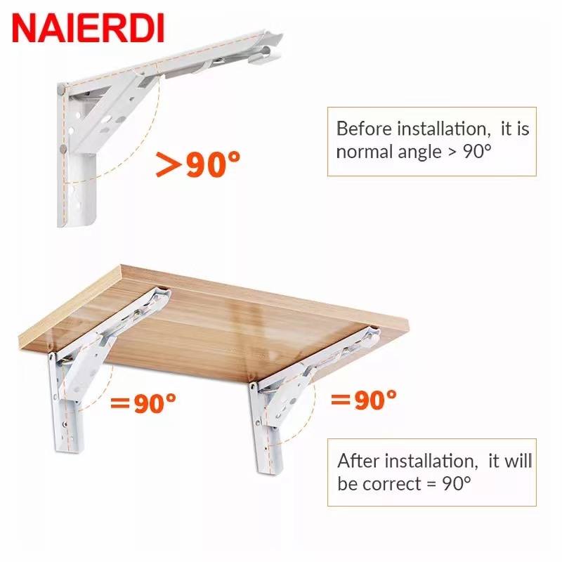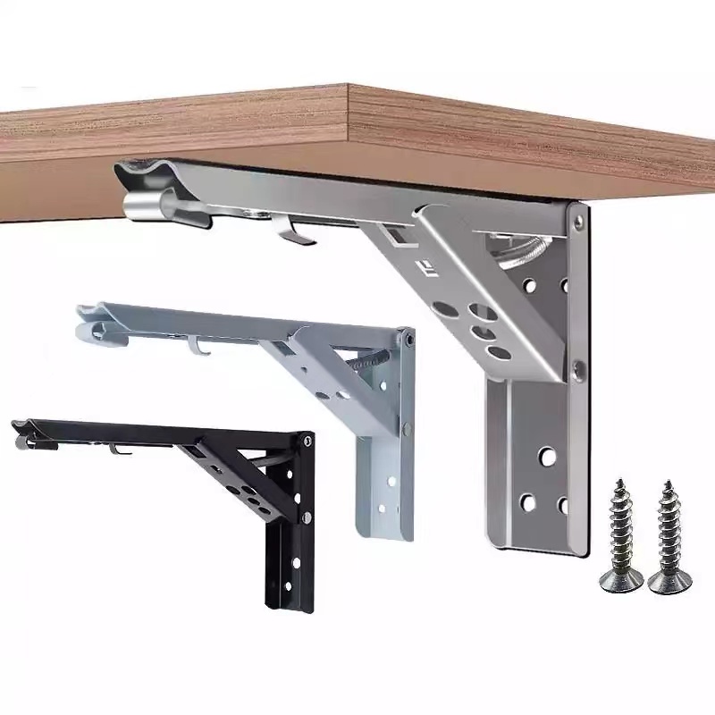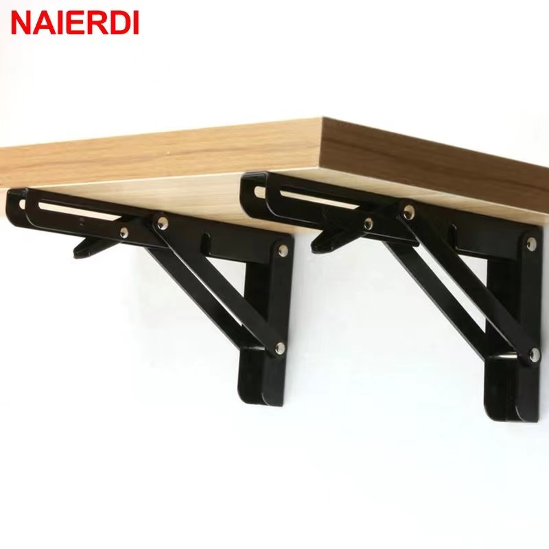 2PCS Stainless Steel Triangle Folding Angle Bracket Heavy Support Black Adjustable Wall Mounted