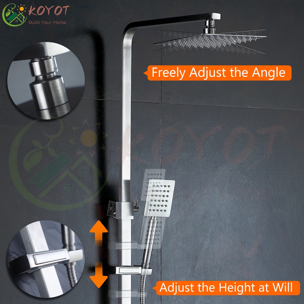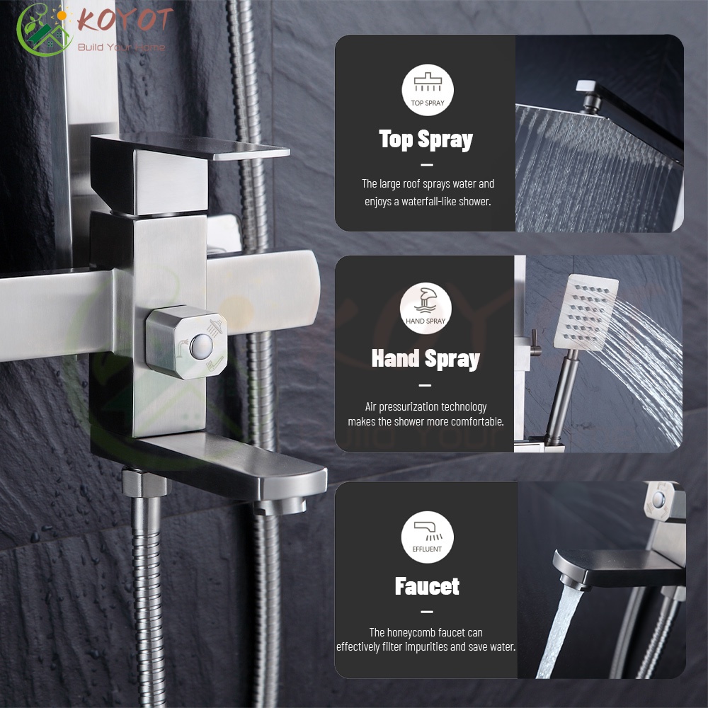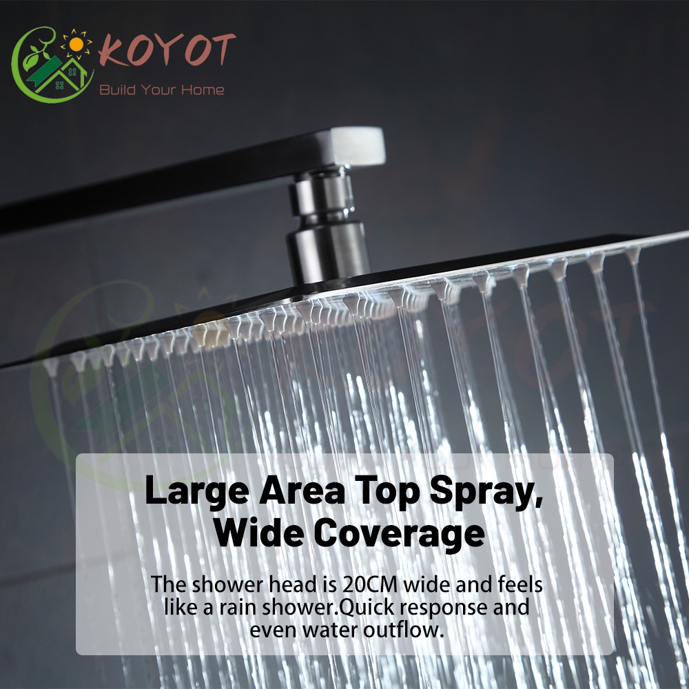 KOYOT 304 Stainless Steel Bathroom Hot and Cold Square Rainfall Shower Set Mixer Faucet Matte Design